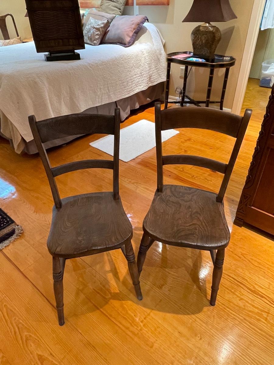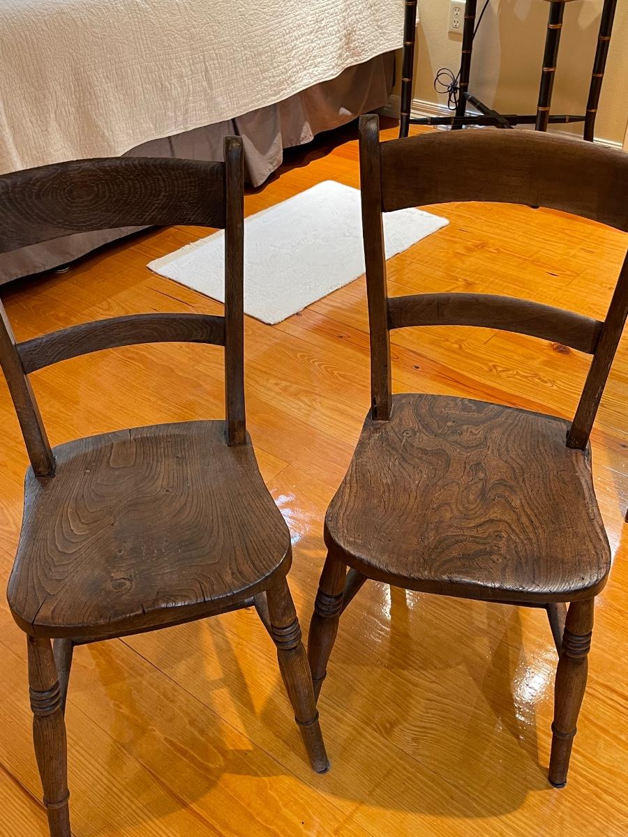 Set of 2 Antique Victorian Elm Rustic Cottage Chairs