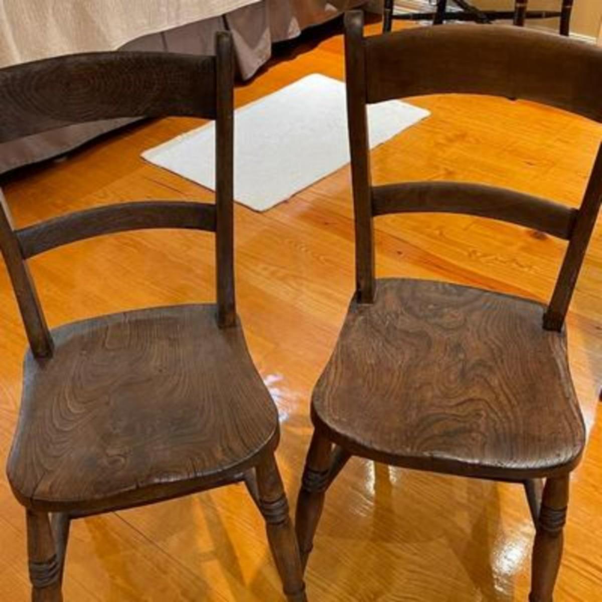 Set of 2 Antique Victorian Elm Rustic Cottage Chairs