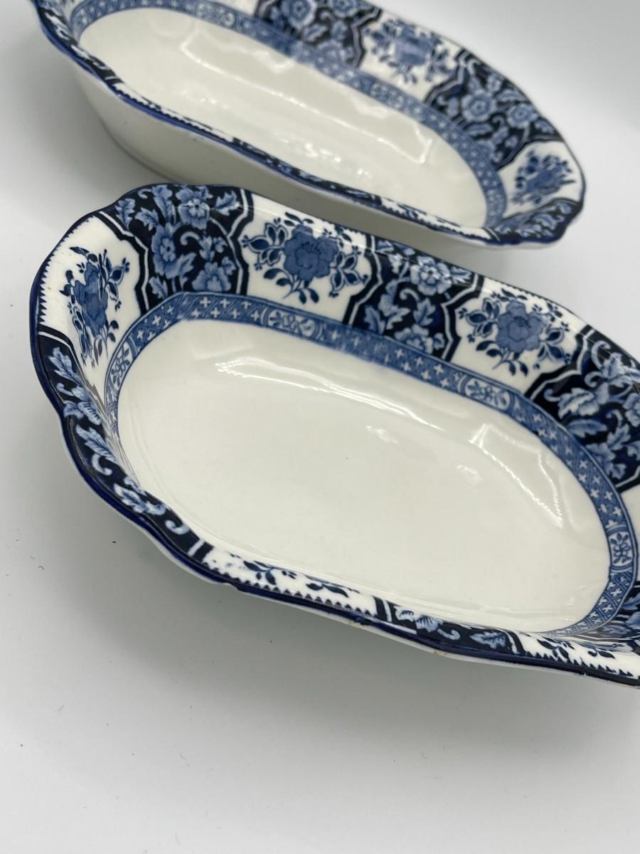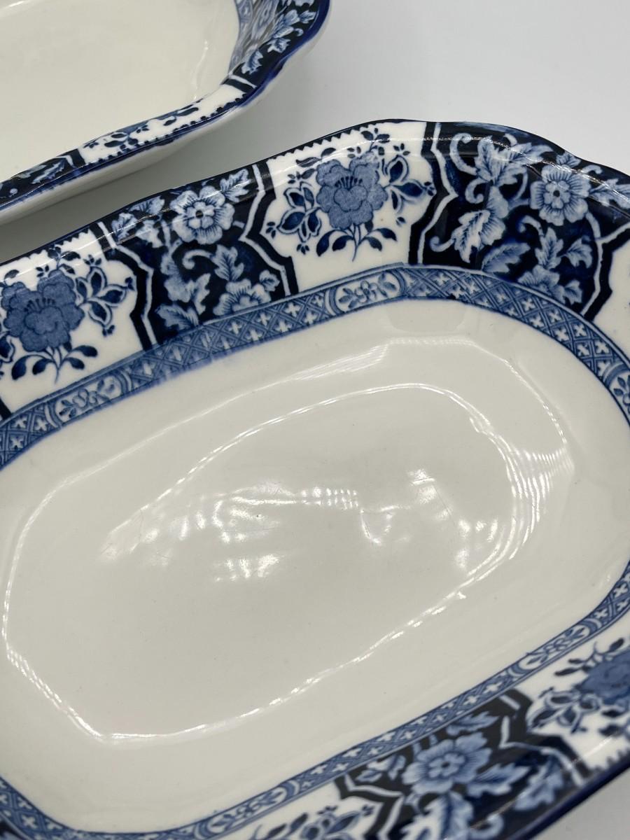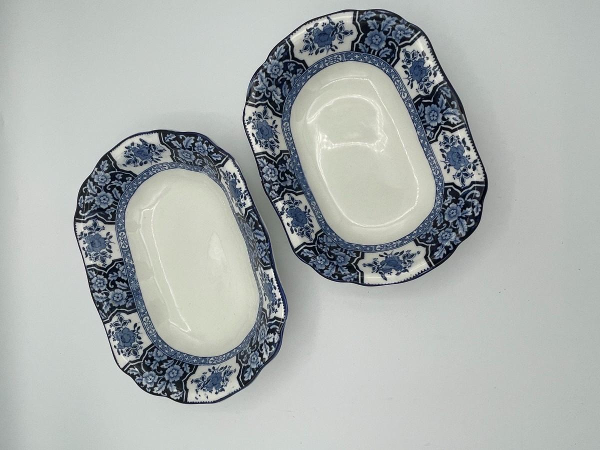 Set of 2 Antique Wood & Son England "Khotan" Oval Blue & White Porcelain Platters
