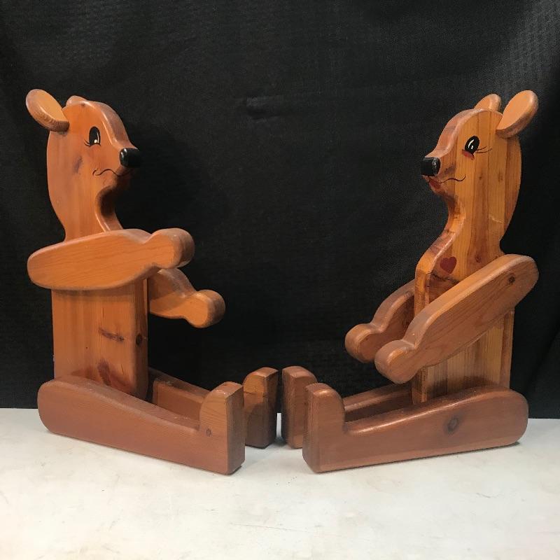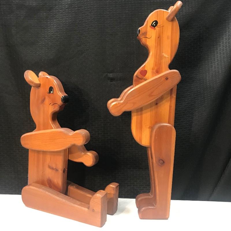 Up for auction our two articulated bear statuettes. Both the legs, as well as arms are hinged and can be posed. These are capable of either sitting or being stood up. Each statuette measures 26 1/4 inches.