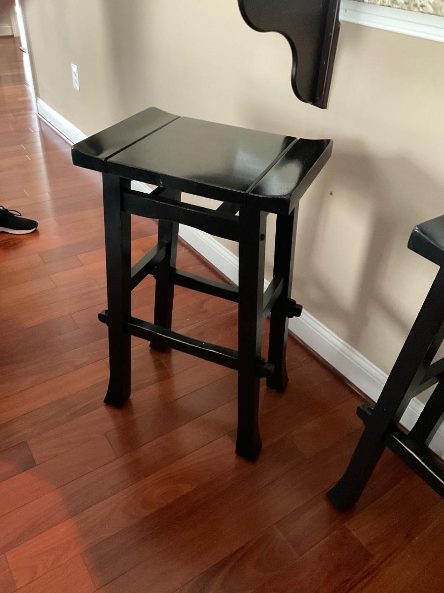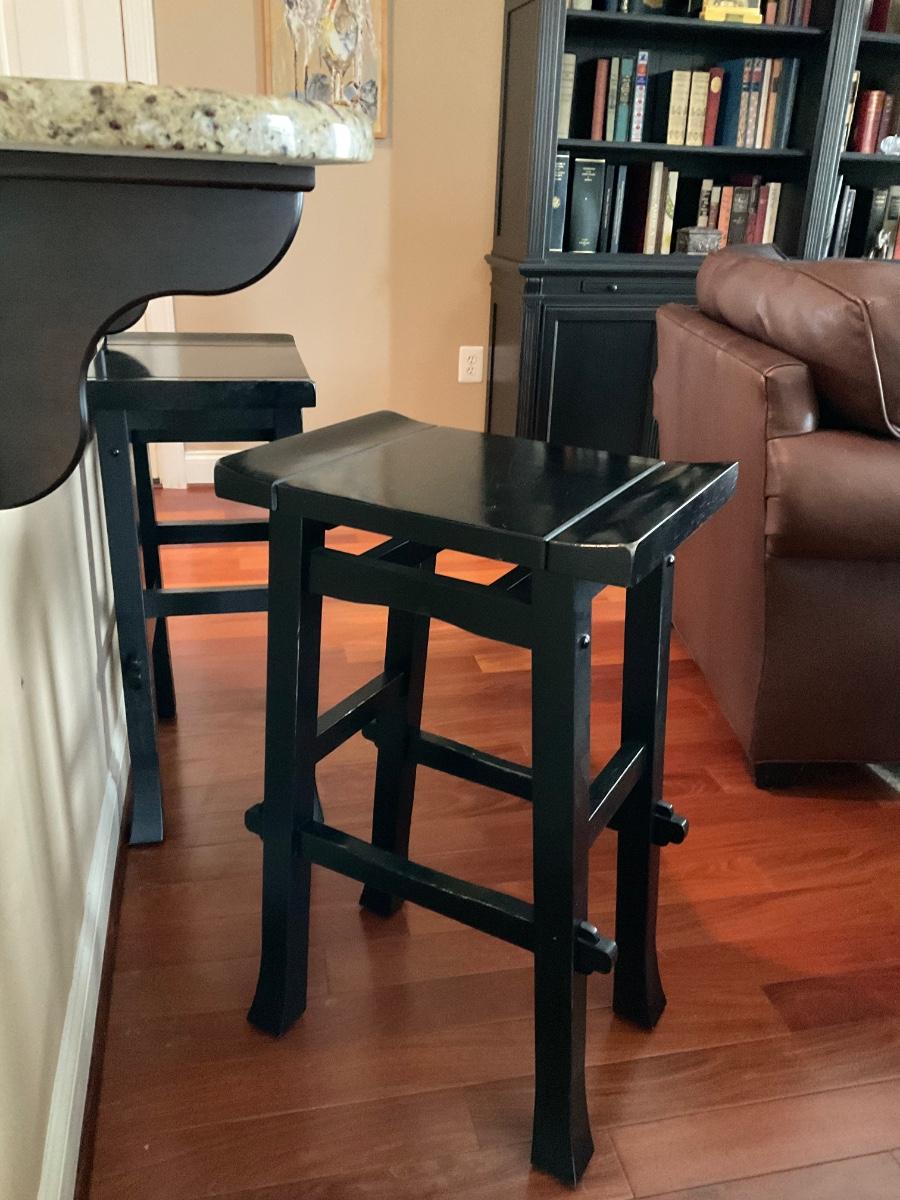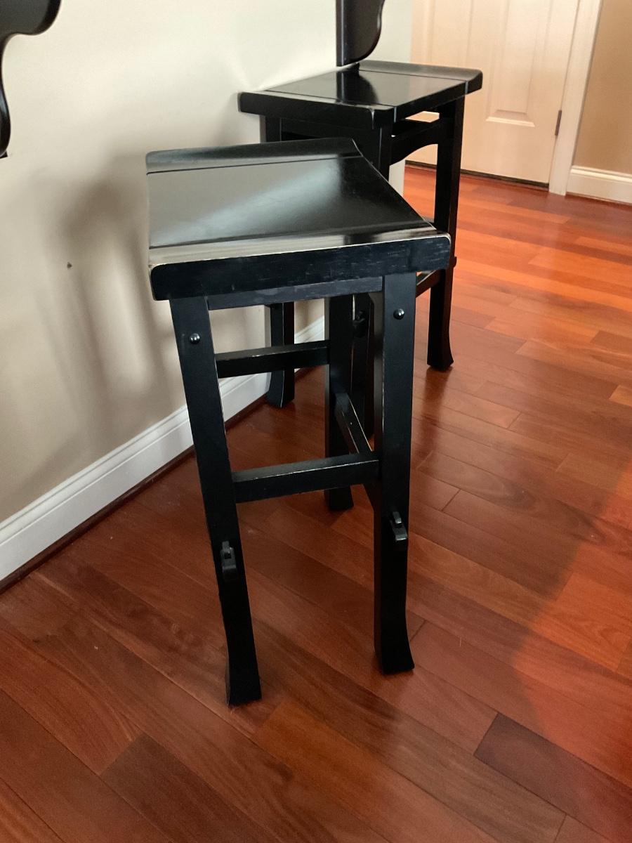 Set of 2 Asian inspired solid wood ebony stained bar stools