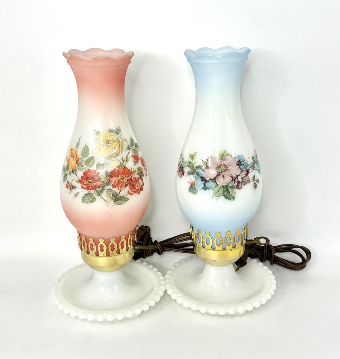 Set of 2 Beautiful Pink and Blue Hurricane Lamps