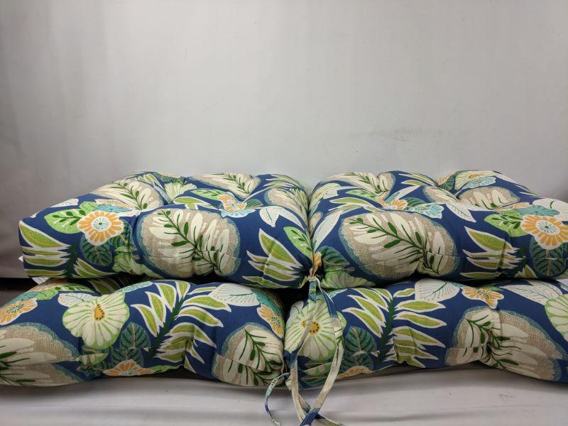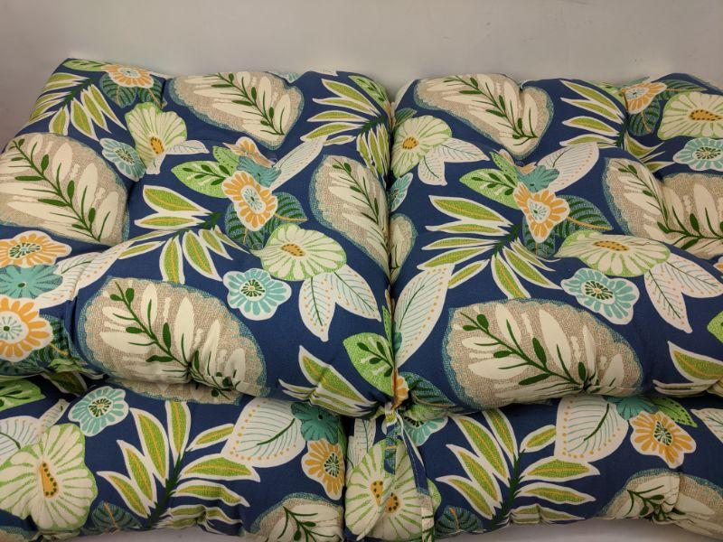 Set of 2 Blue Floral Outdoor Chair Cushions, Greendale, Marlow - New