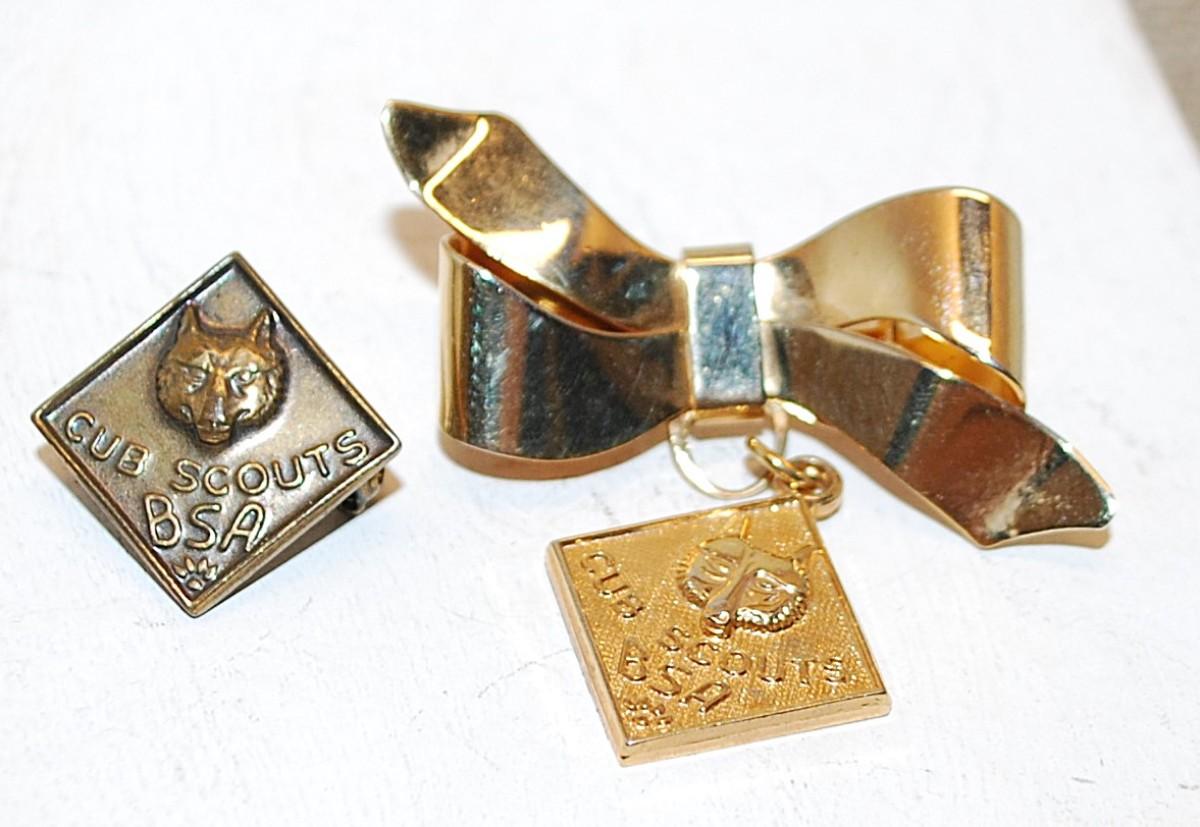 Set of 2 "BSA Cub Scouts" Collectible BROOCH & PIN; One with Gold Tone Ribbon