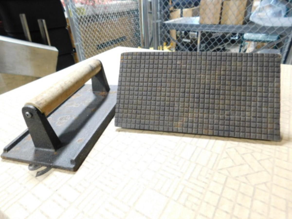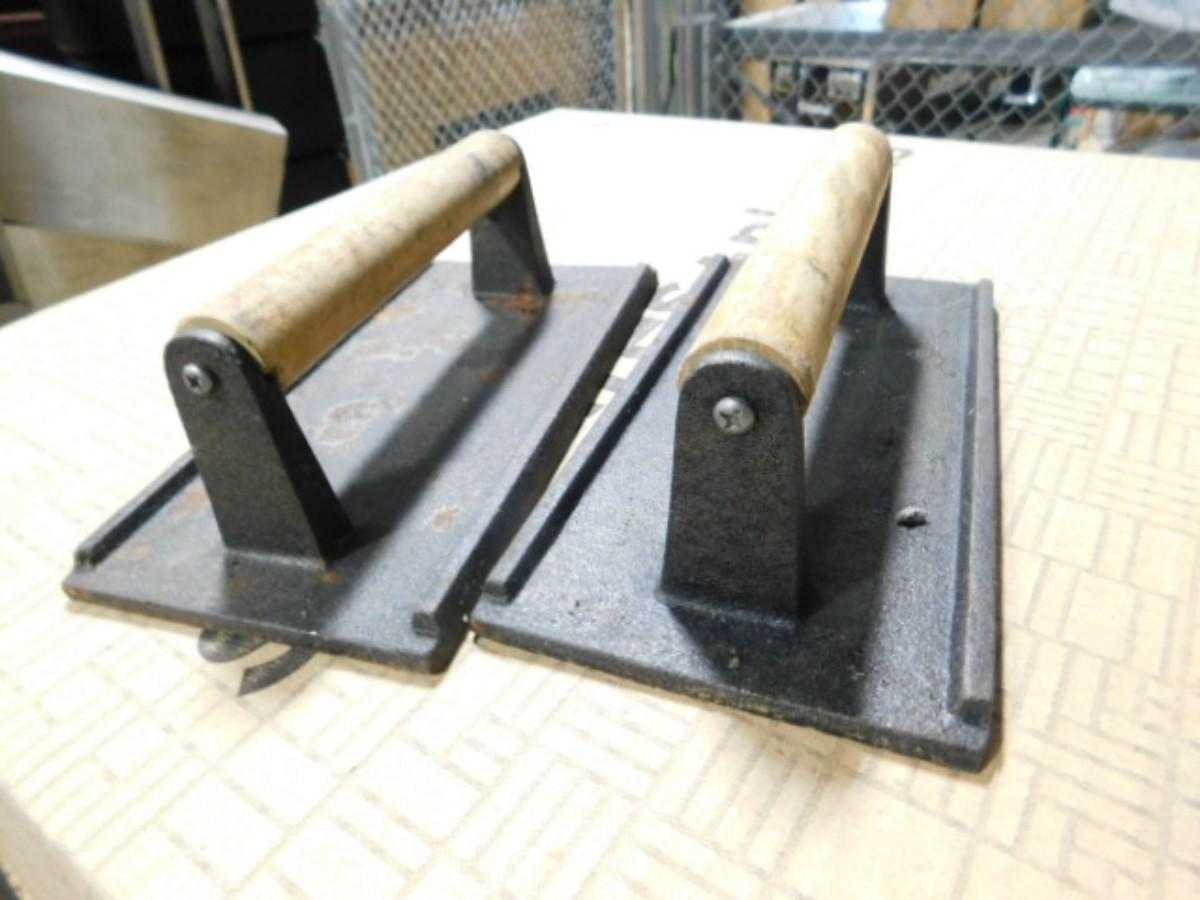 Set of 2 Cast Flat Top Grill Food Presses with Wooden Handles Choice B
