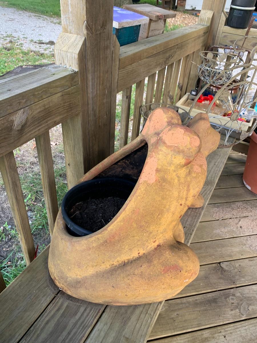 The frog planters are in very good condition. There is a large and a smaller one. Vintage