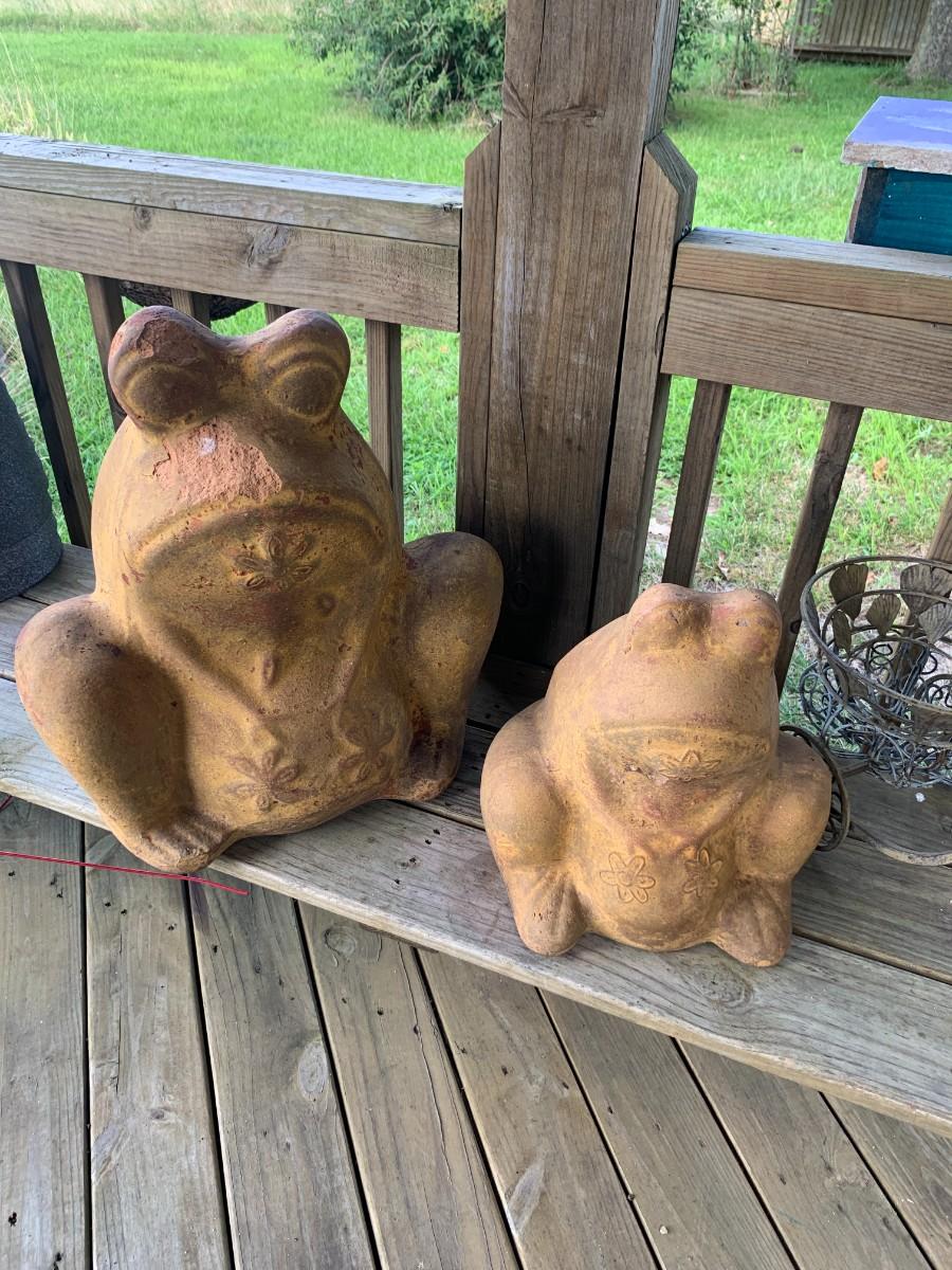 Set of 2 vintage ceramic / cement Frog planters large and small