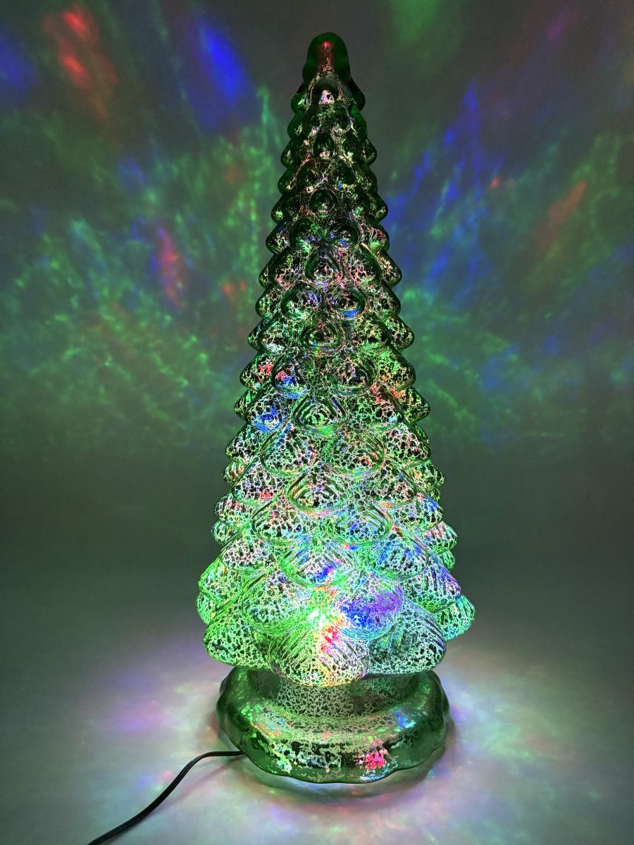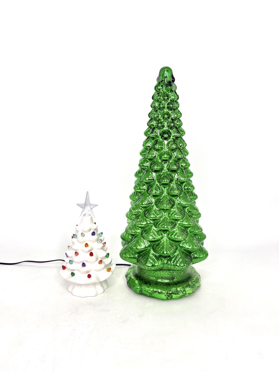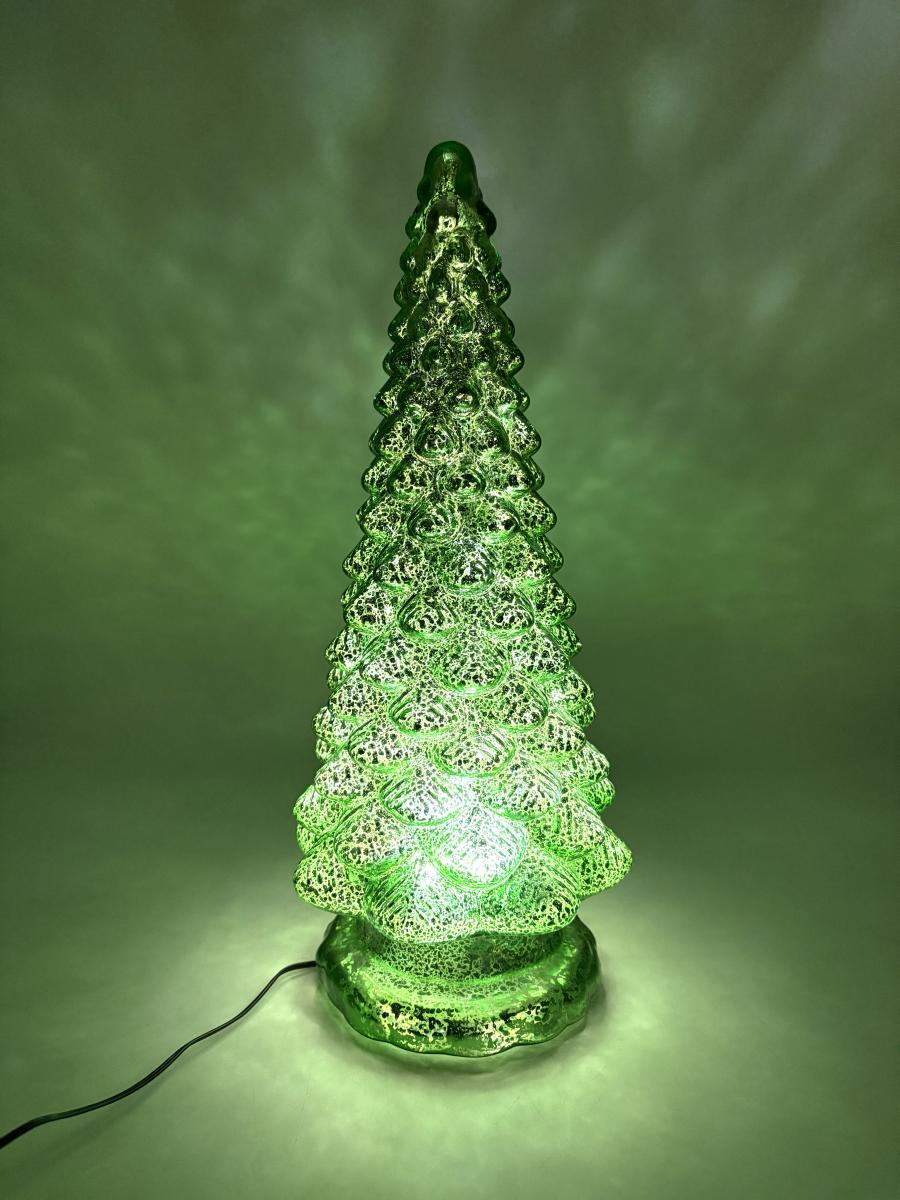 Green tree is 16” tall x 7” diameter and plugs into the wall for power.