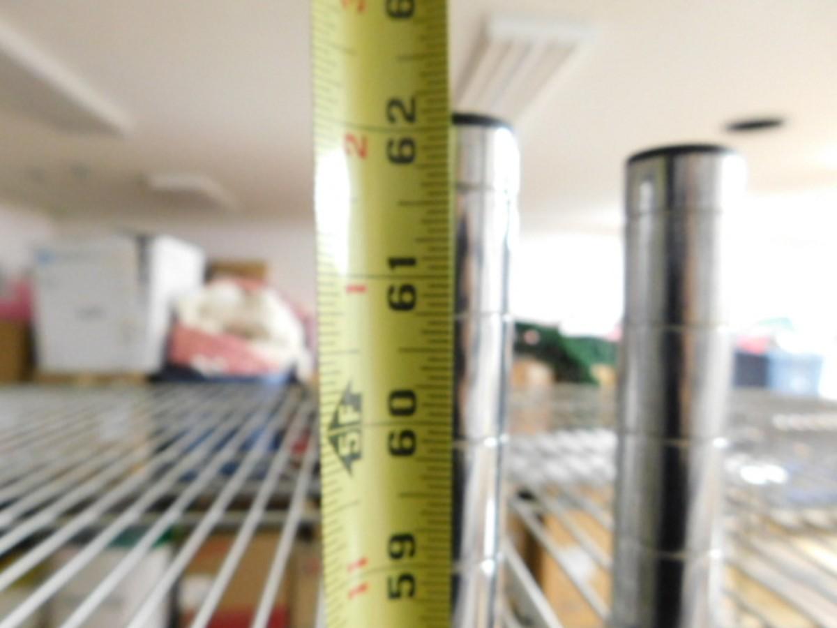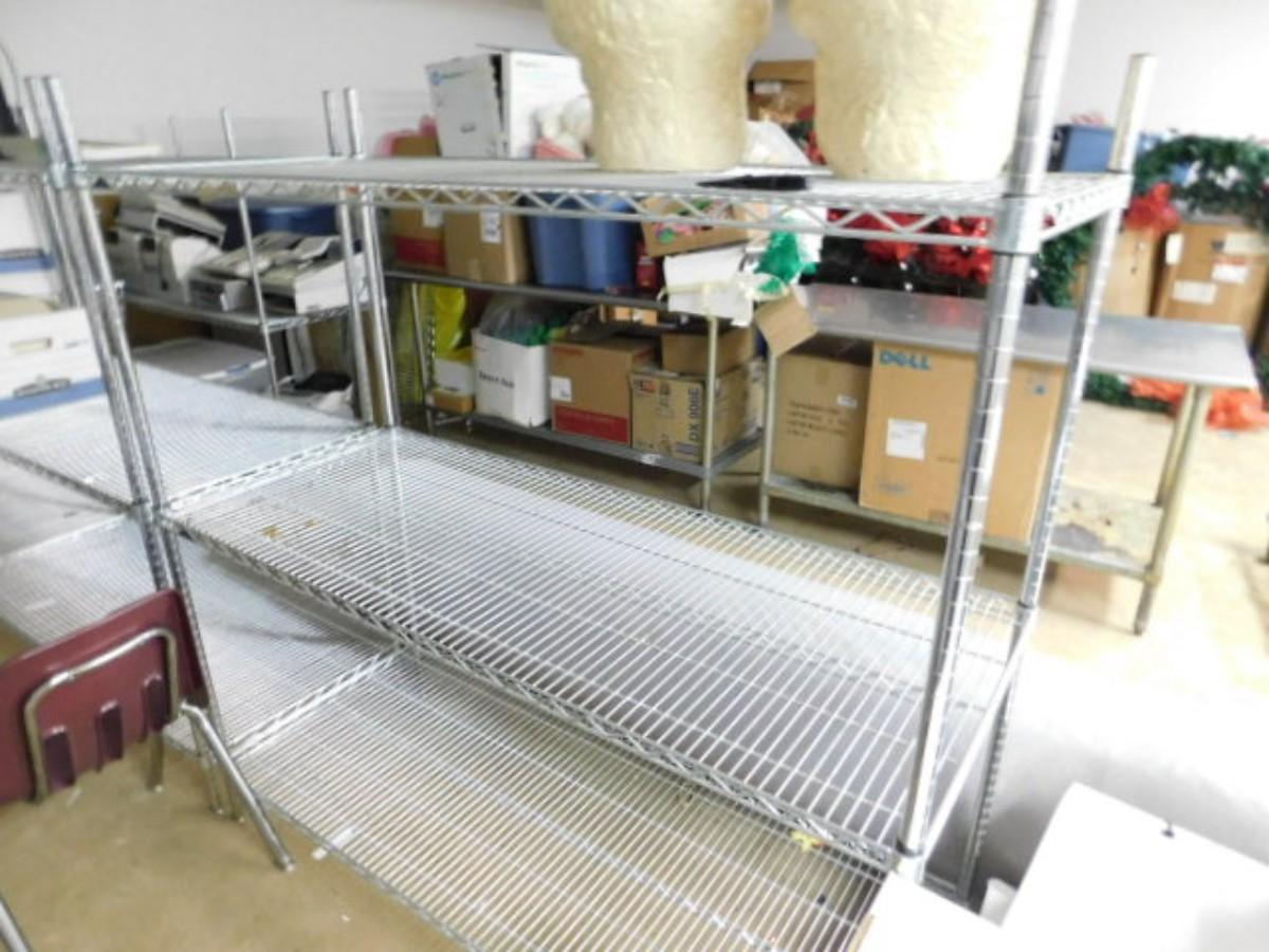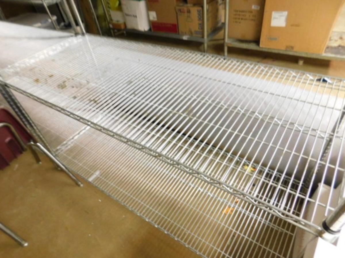 Set of 2 Commercial Metal Wire 5' Shelves Choice A Expect some wear or scratches to finish. Shipping option available via freight or local mover at Buyer's expense. Buyer must have all shipping scheduled within the stated dates and times of pickup. Recommended local mover is Beaty Bros. Moving 828-201-2982