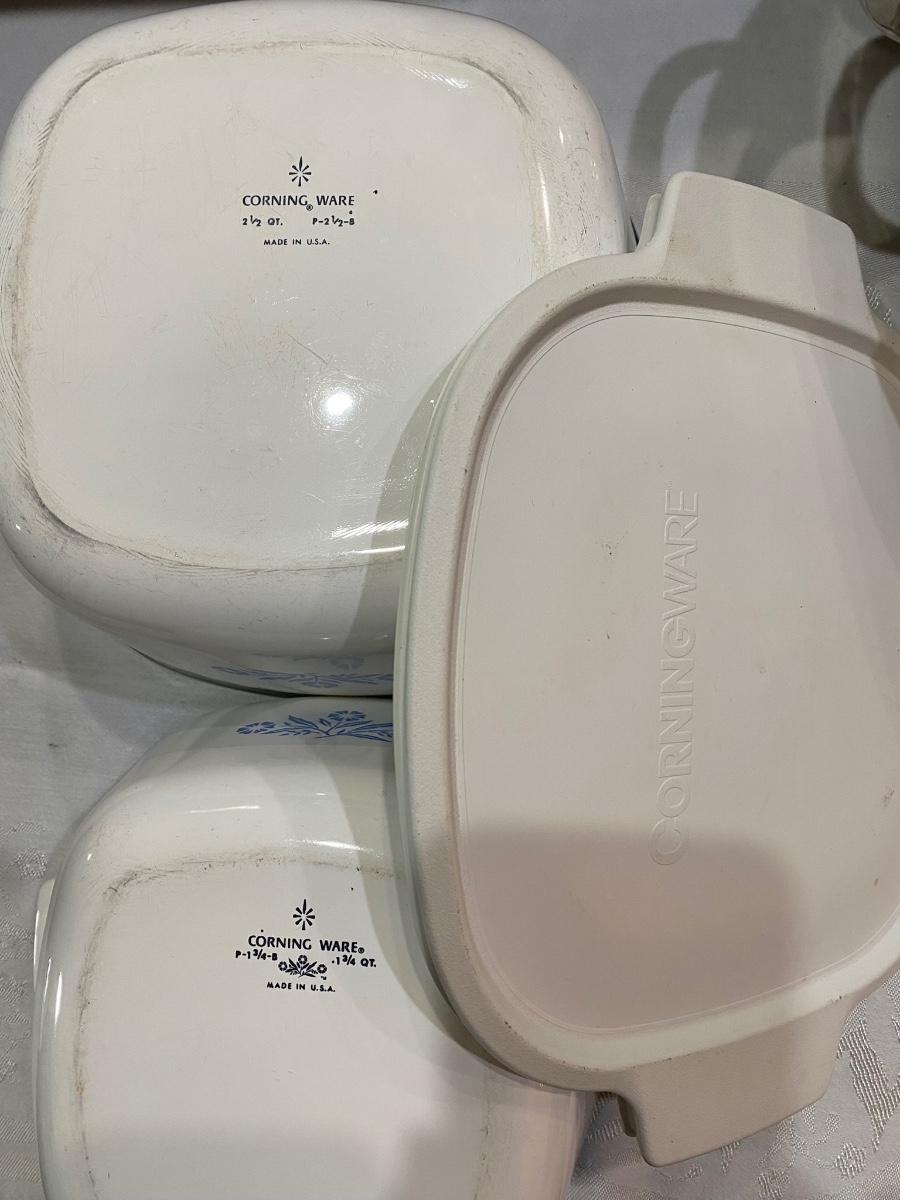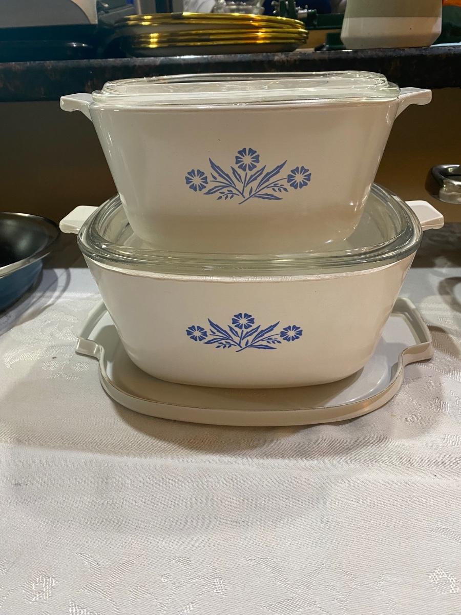 Set of 2 Corning Ware casseroles with lids. 2-1/2qt & 1-3/4qt. Incl. plastic cover for 2-1/2qt. Exc cond.