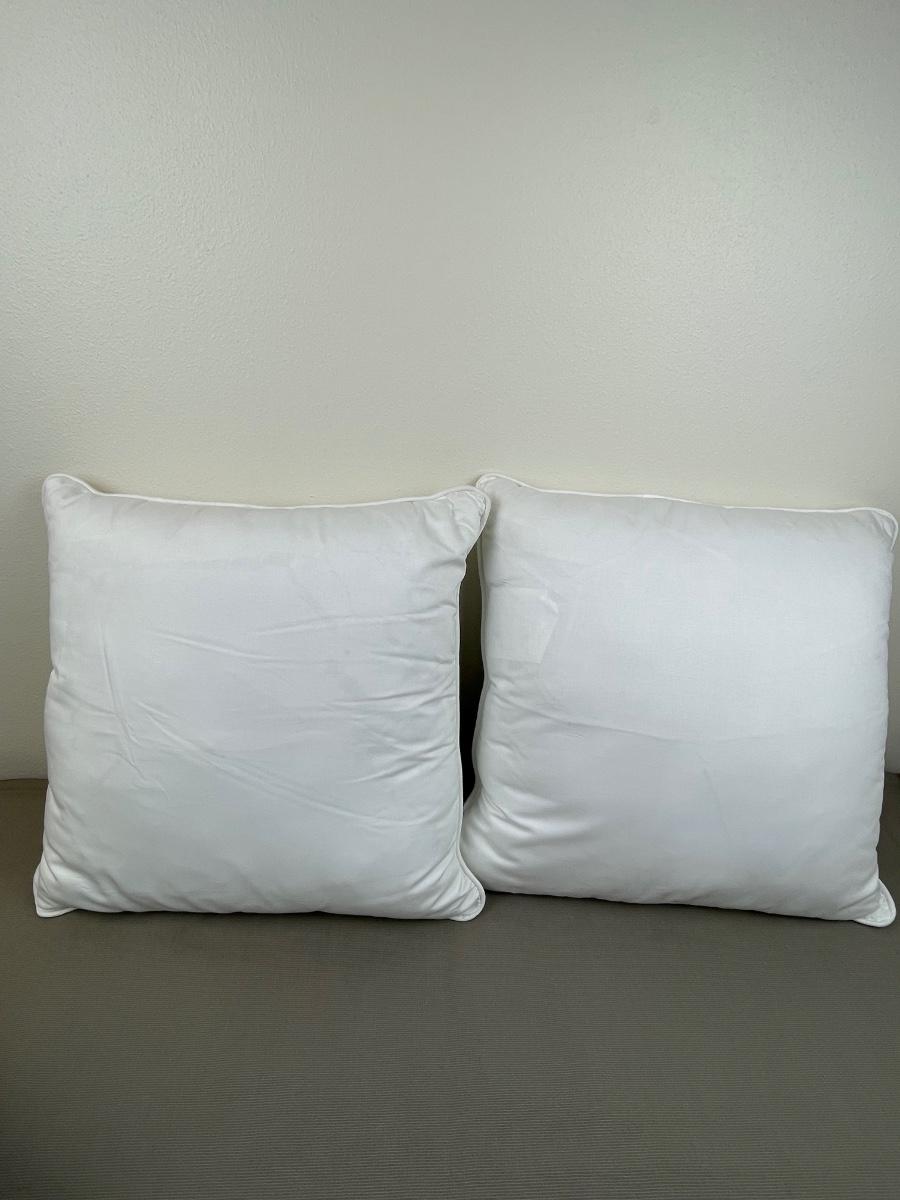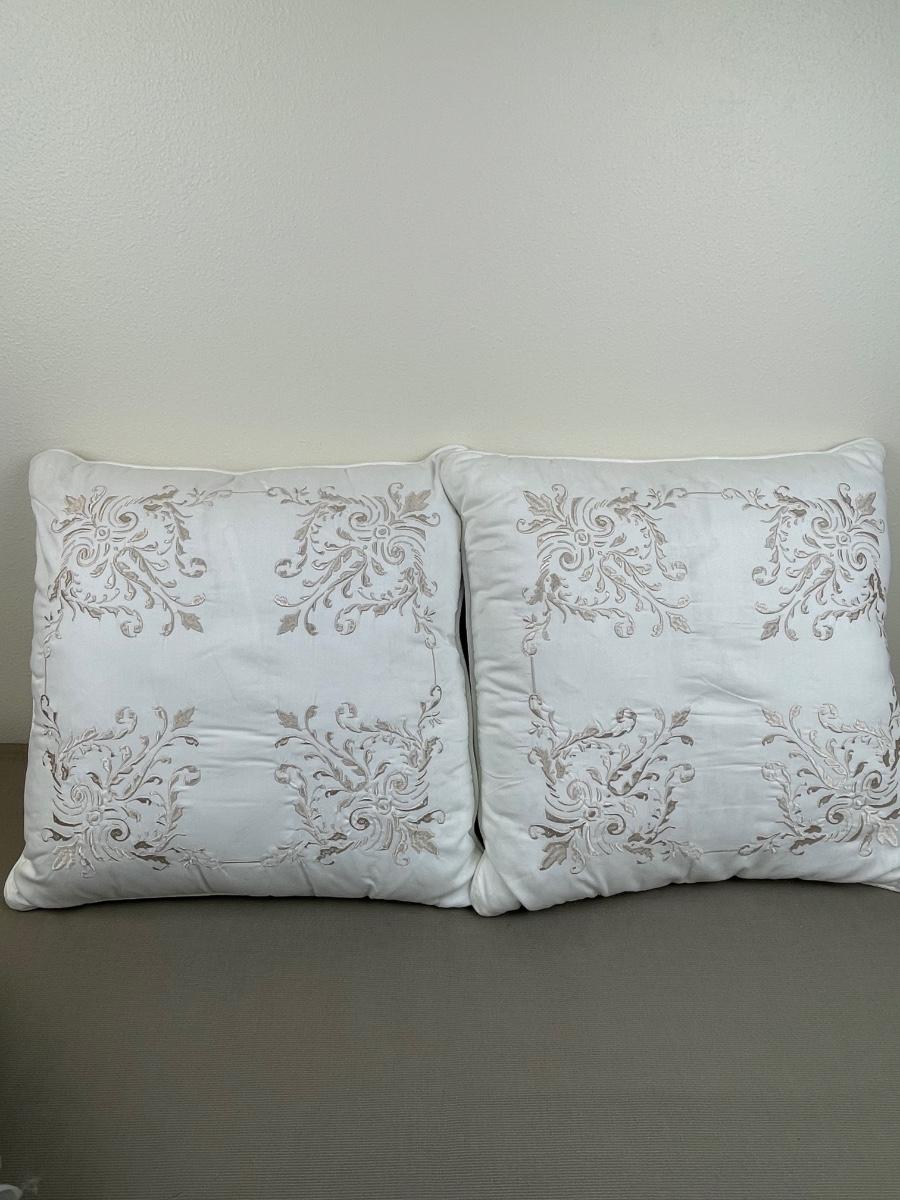 Matches sheet sets. Embroidered 16 Inch square pillows. Look new. Removable zipper covers.