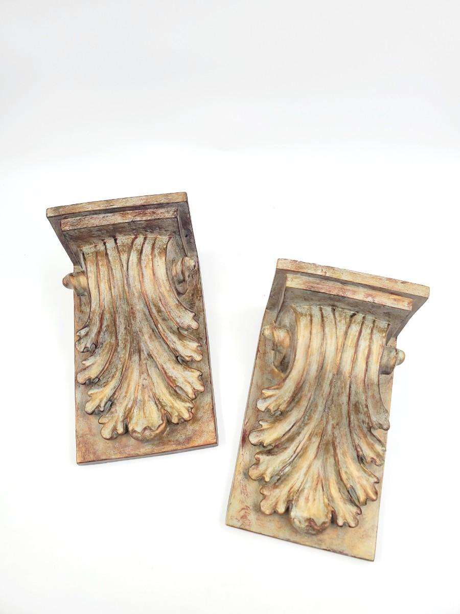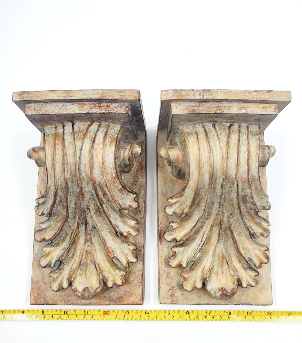 Very pretty wall corbels, built in hook holes on back, good condition.