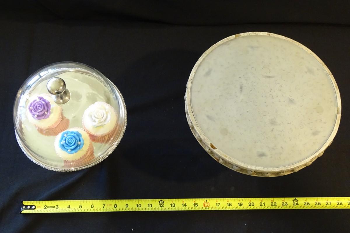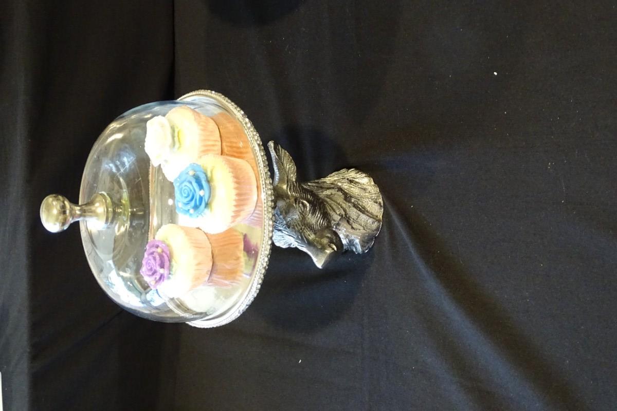 x1 Holiday Stag Head Platter Cake Stand Silver Deer Serving with Glass Top, x3 fake cupcakes;