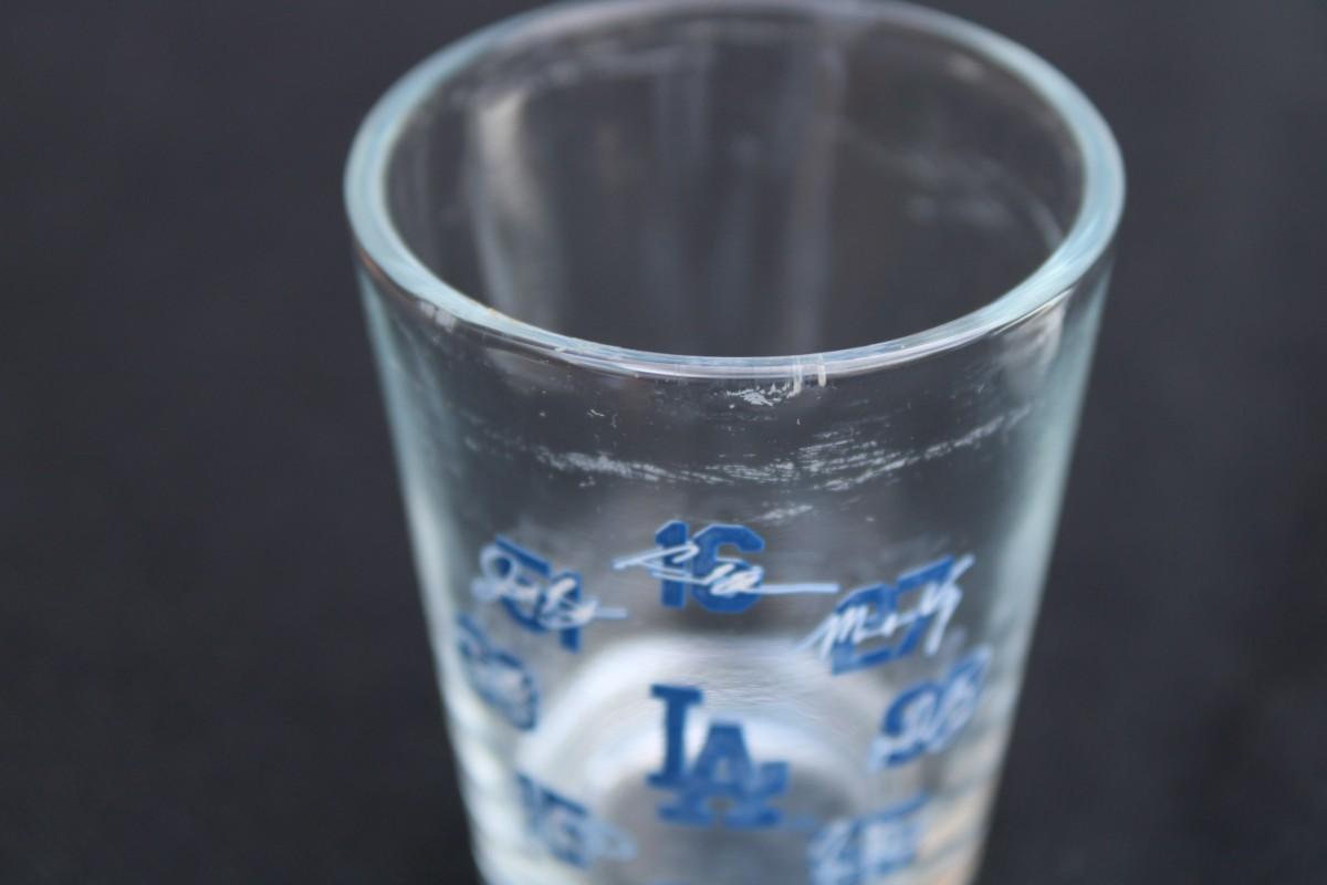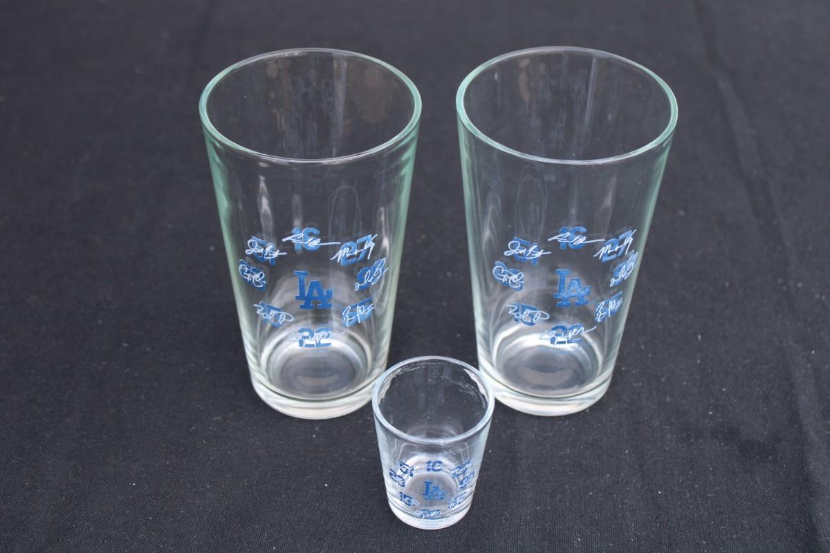 Set of 2 Dodgers pint glasses and one Dodgers shot glasses