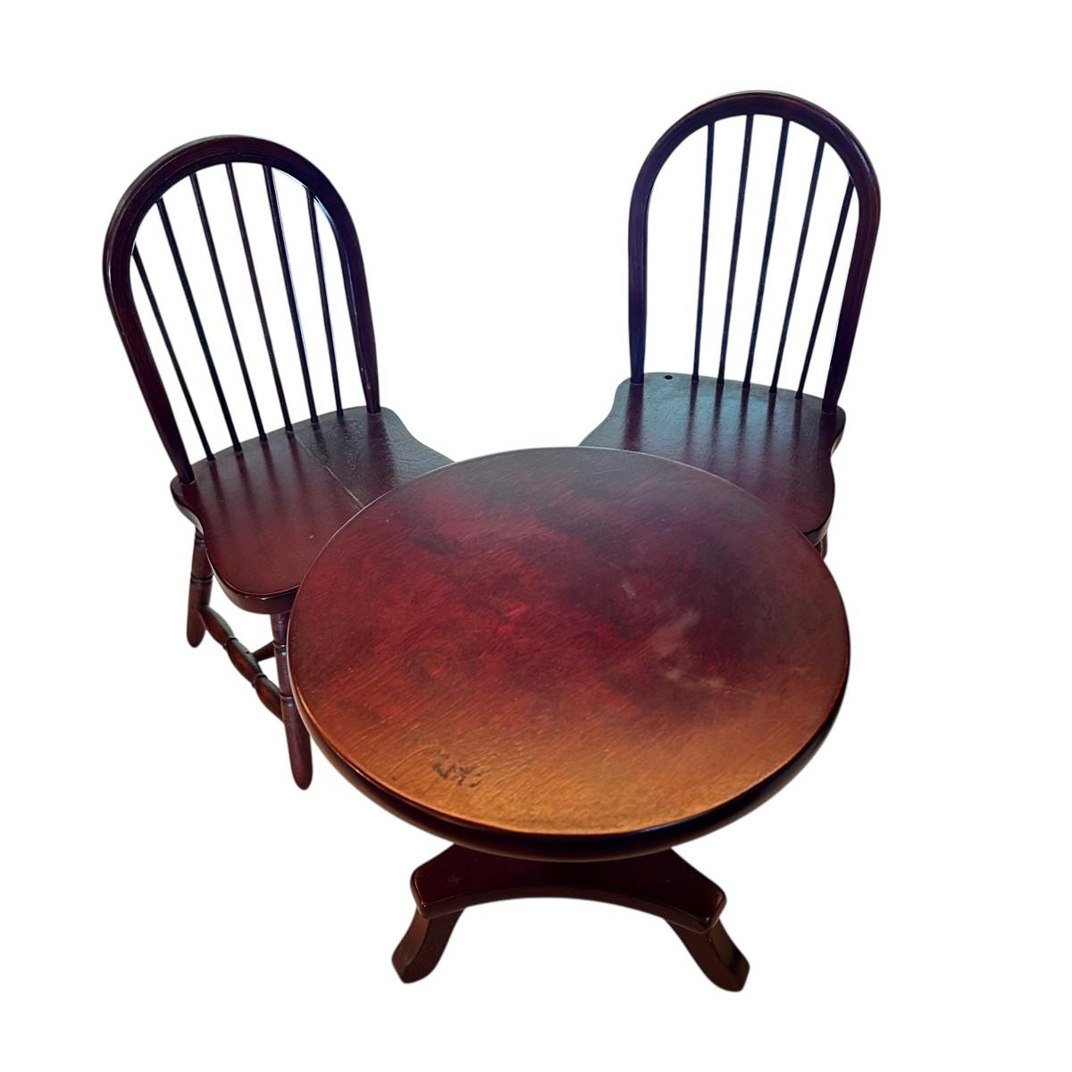 Set of 2 Doll Chairs and Table (one spindle missing from chair)