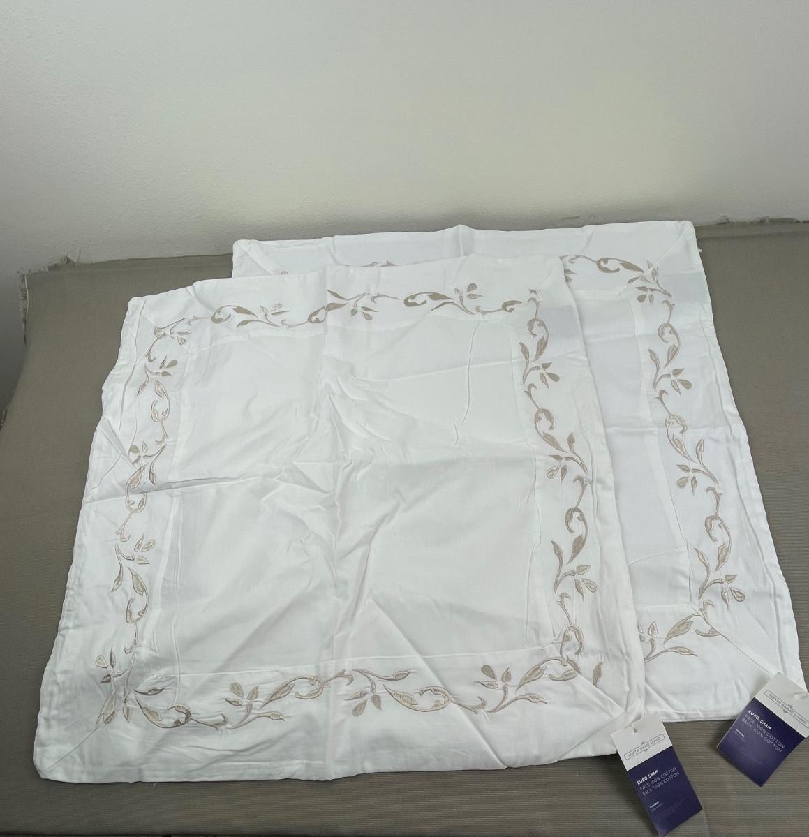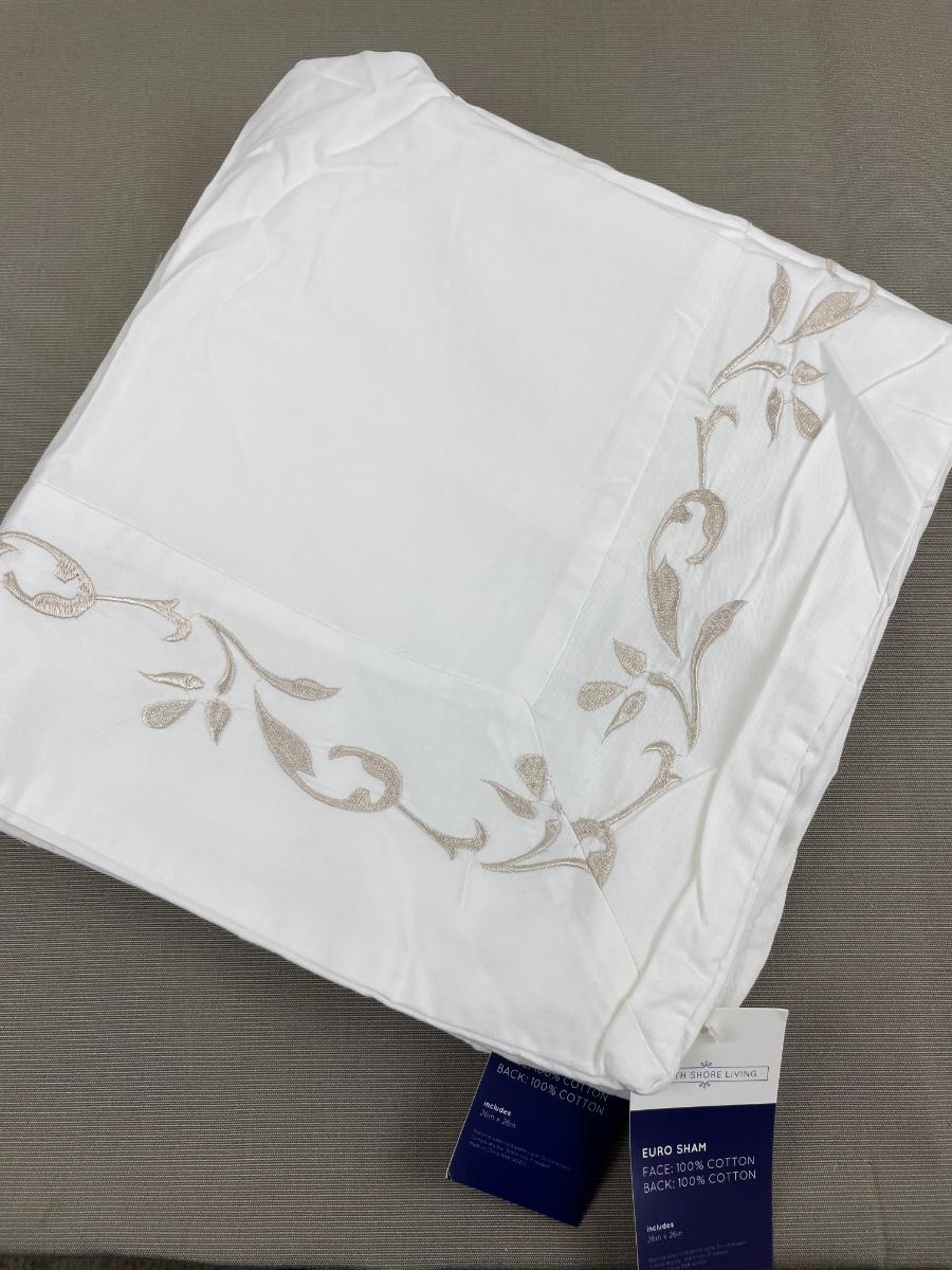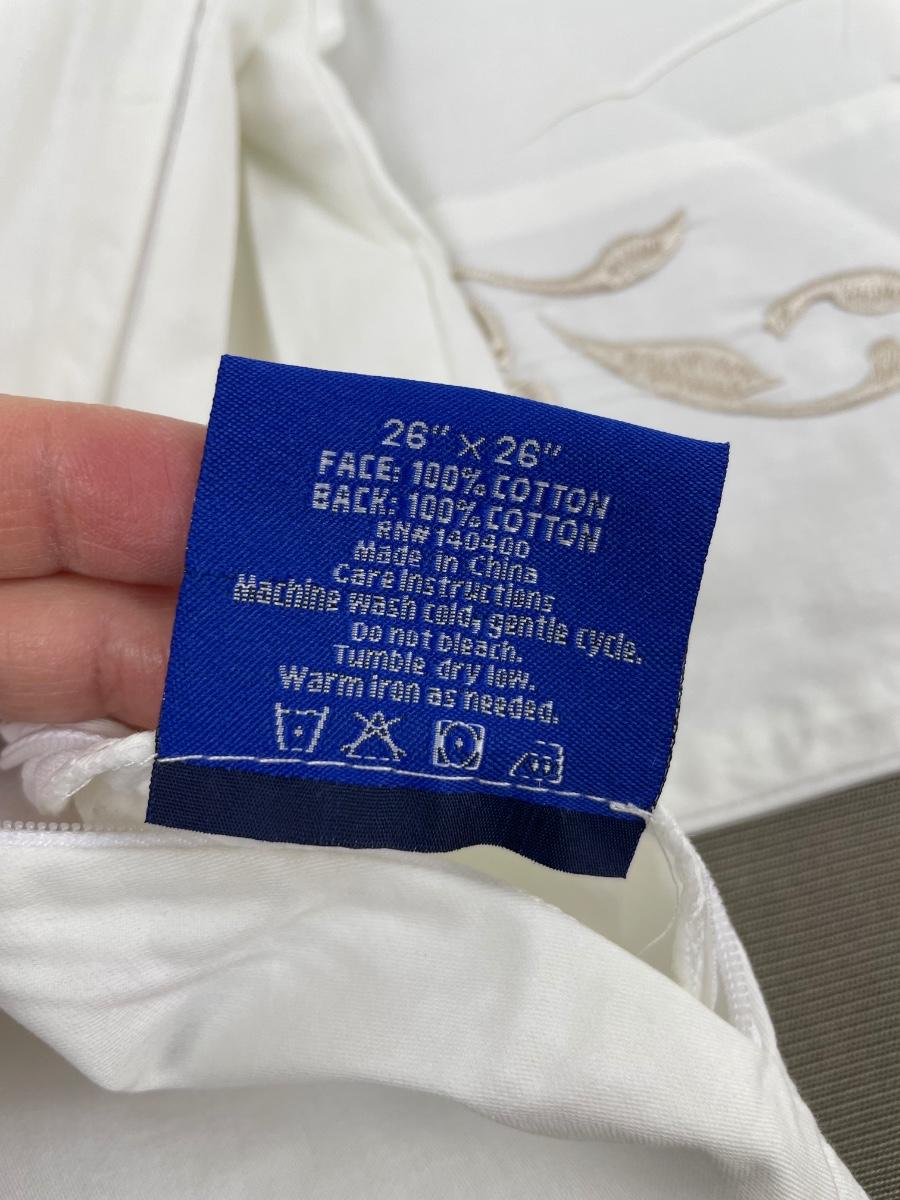 Matches bedding and pillow lots. Embroidered with zipper covers. 26 inches square. Does not include a pillow form.