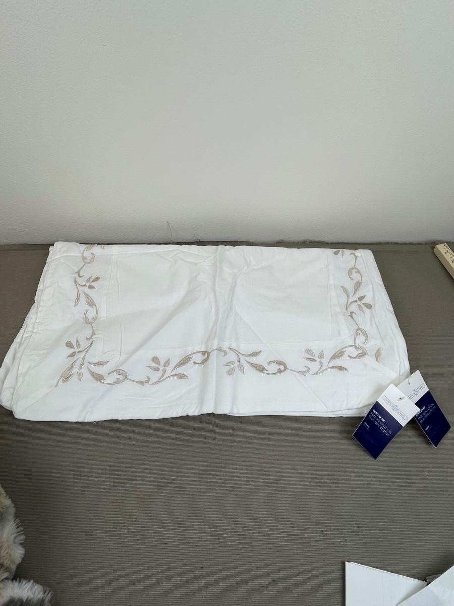 Matches bedding and pillow lots. Embroidered with zipper covers. 26 inches square. Does not include a pillow form.