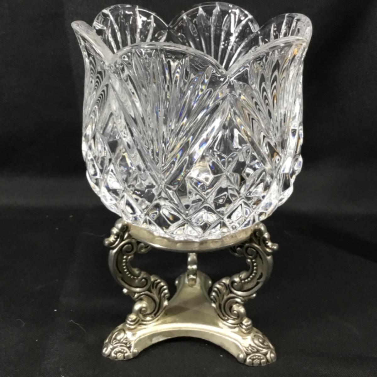 Set of 2 Godinger Silver Co. Cut Crystal Candle Holders w. Metal Base
