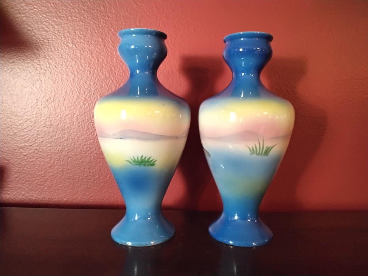 Handpainted with 24k gold accents this is a stunning pair of Vases. 10 1/2"