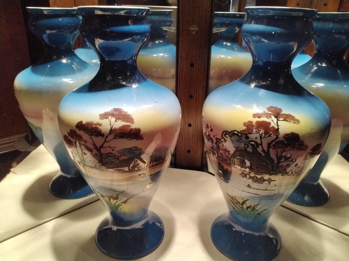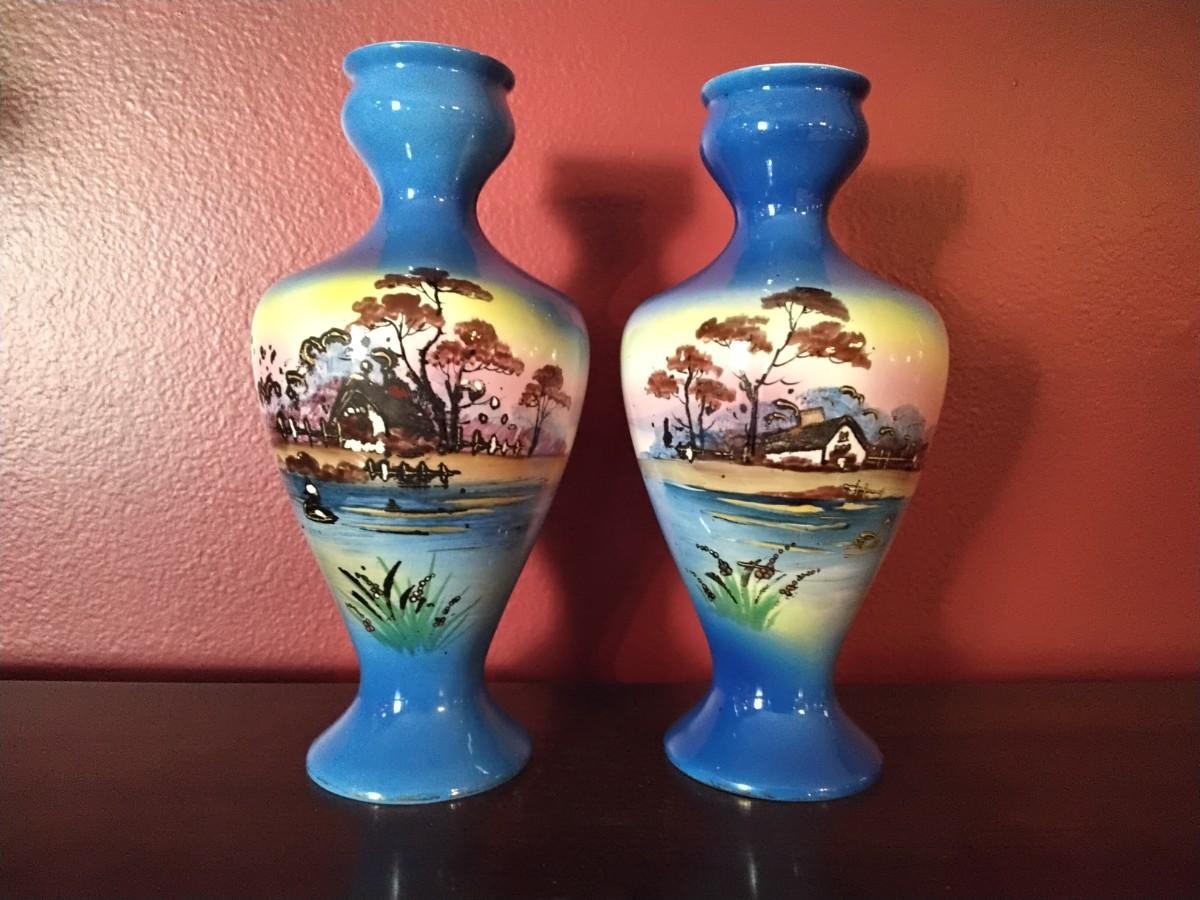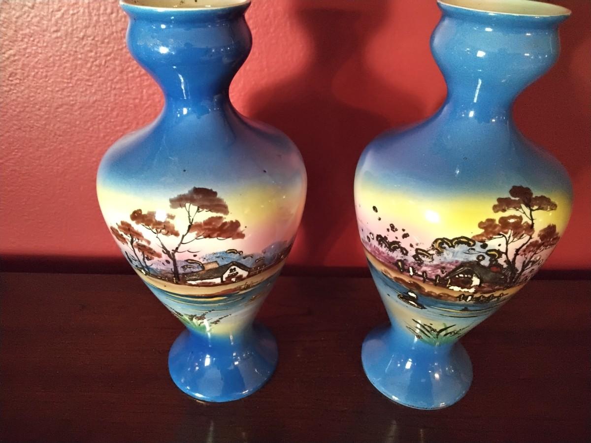 Handpainted with 24k gold accents this is a stunning pair of Vases. 10 1/2"