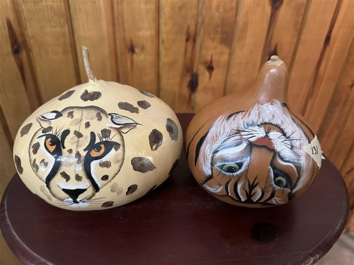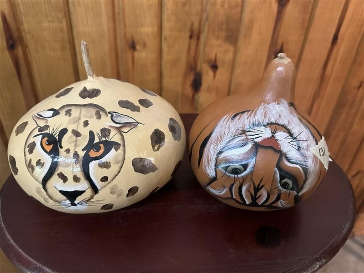 131 Set of 2 Hand Painted Decorative Gourds