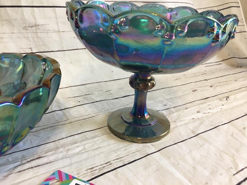Set of 2 large Vintage Carnival Glass Dishes. Mid century