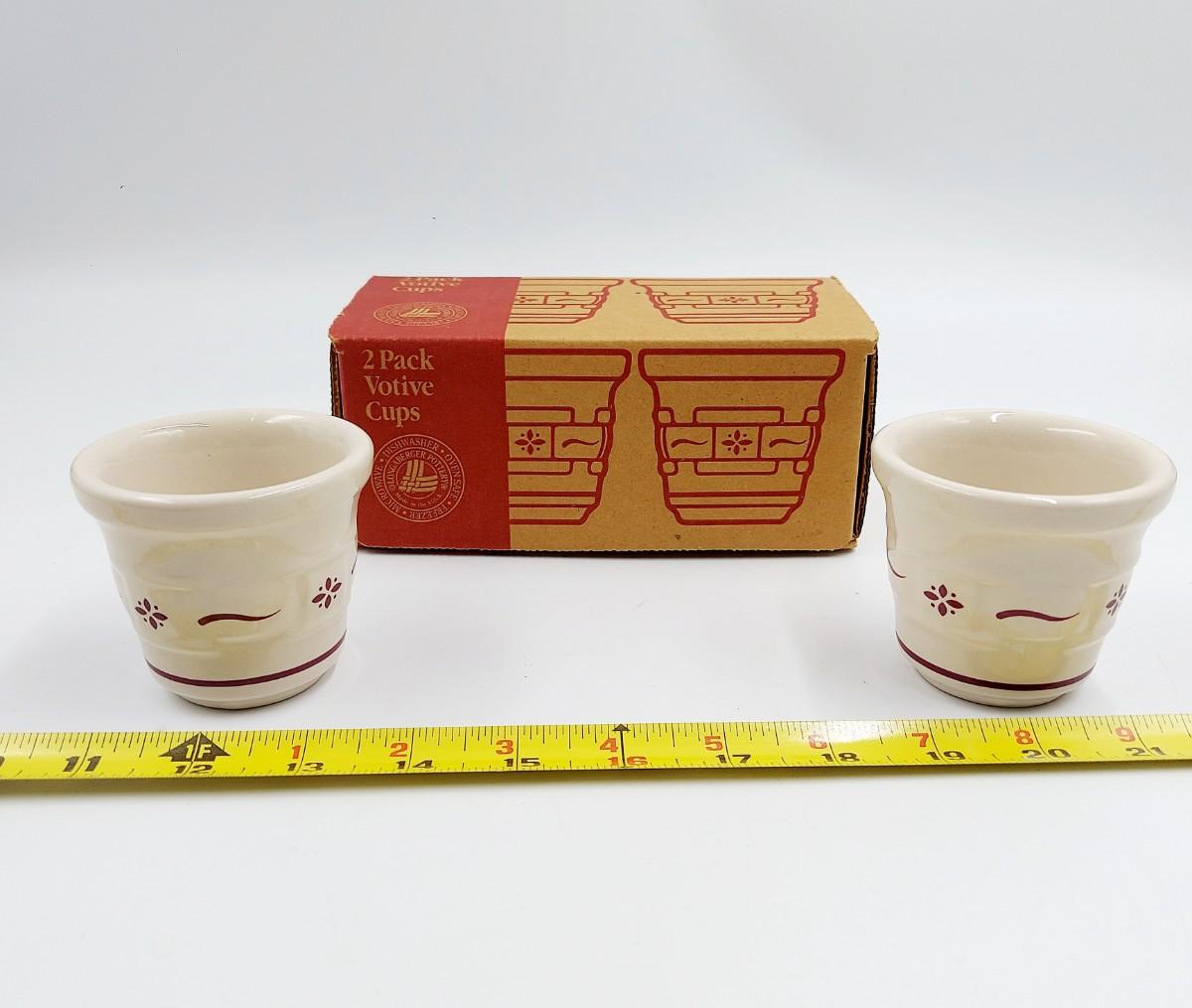 SET OF 2 LONGABERGER RED POTTERY VOTIVE SMALL BOWL