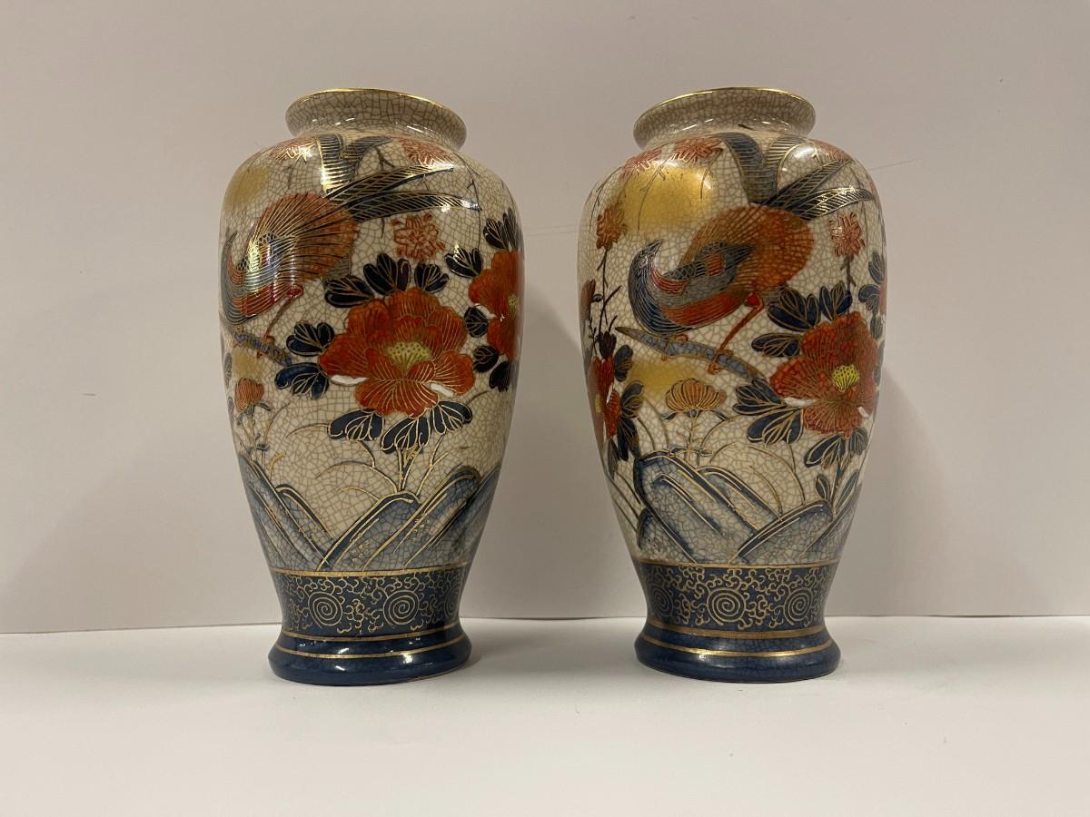 Set of 2 matching Chinese porcelain vases. 7 1/2" x 4".