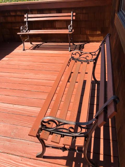 Set of 2 Metal and Wood Benches. In good condition, well maintained.