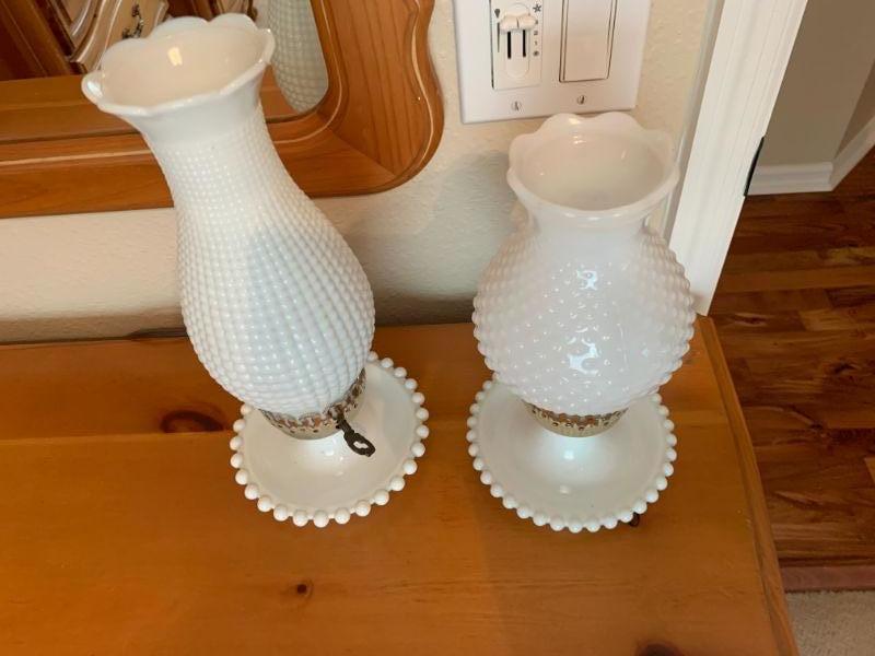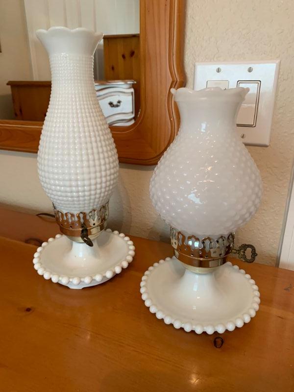 Two Milk Glass Lamps in excellent condition. No cracks, chips or repairs.