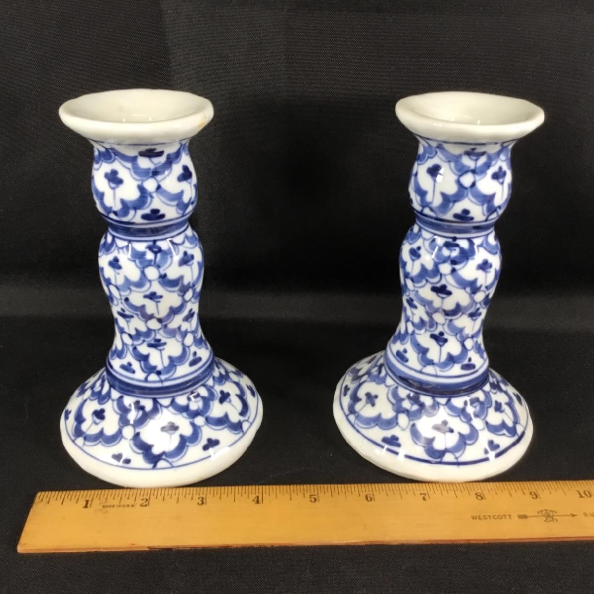 Up for auction is a set of two ceramic candleholders. They are both in excellent condition with no visible damage; see pictures.