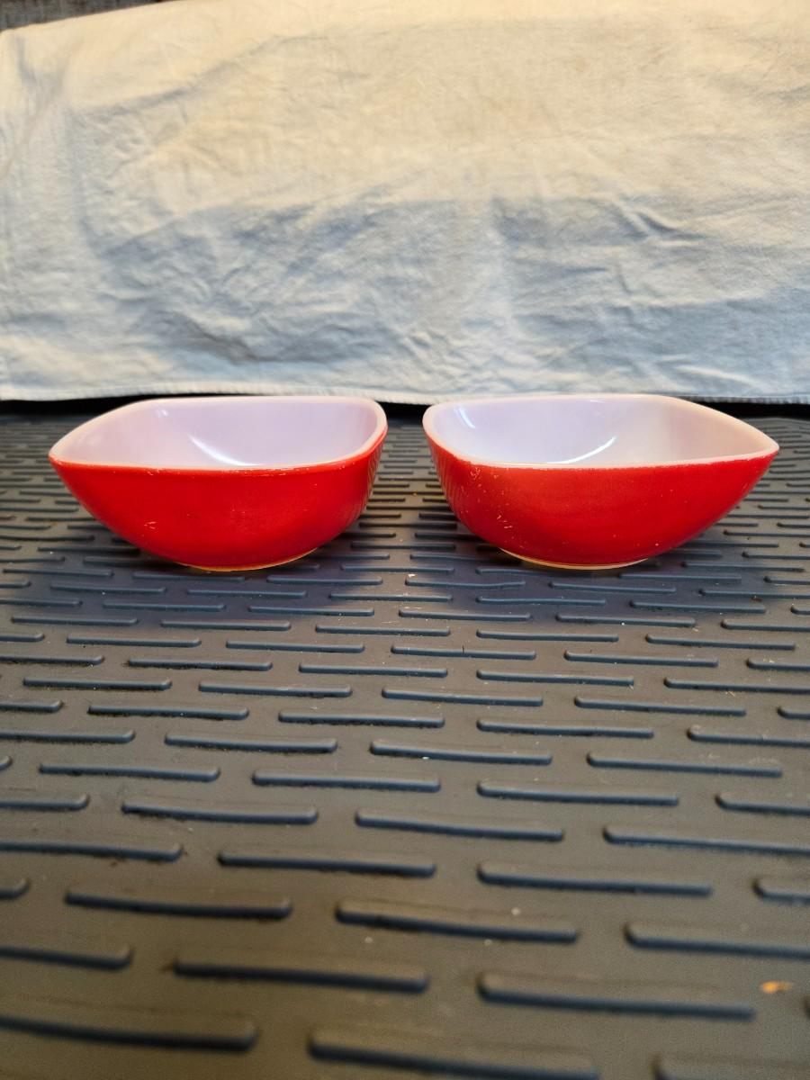 Set of 2 Pyrex red square red 410 bowls. 12 oz ea
