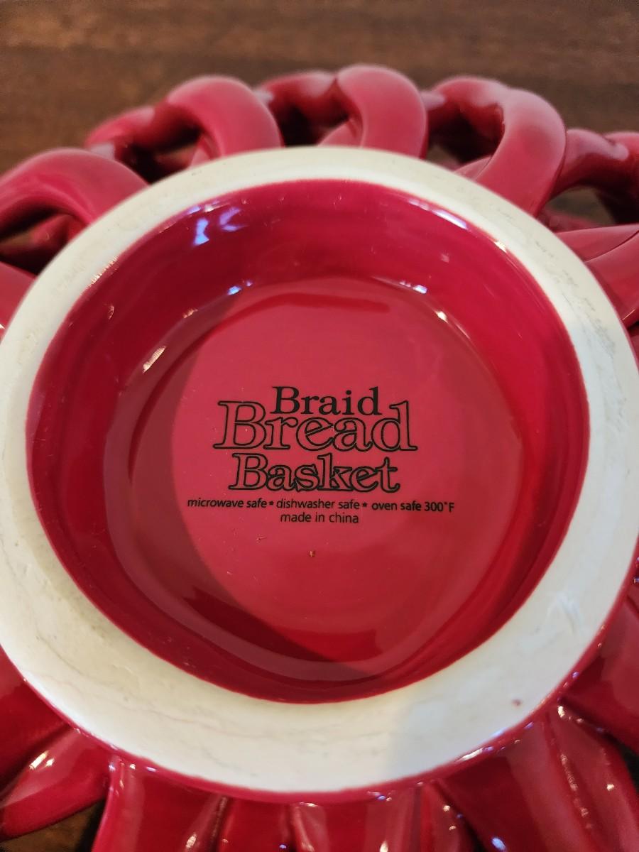 Set of two - rich red Braid Braid Bread Baskets. Oven safe to 300 degrees, Microwave safe, Dishwasher safe.