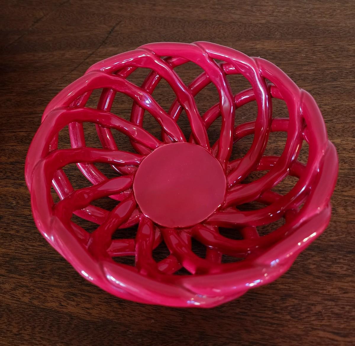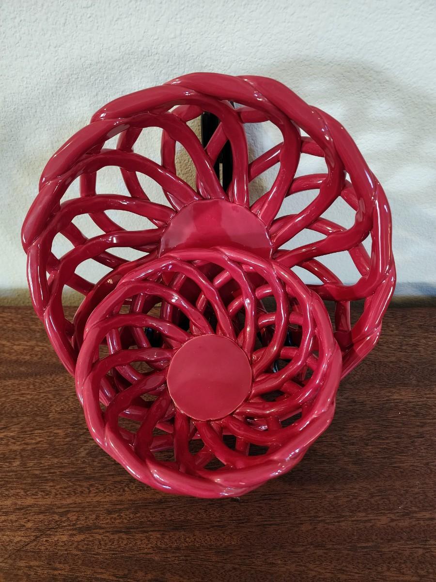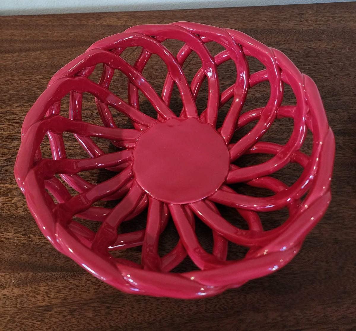 Set of 2 Red Round Ceramic Braid Bread Baskets - Never used
