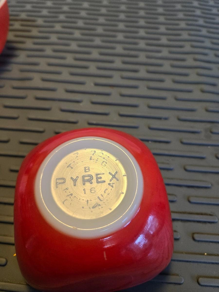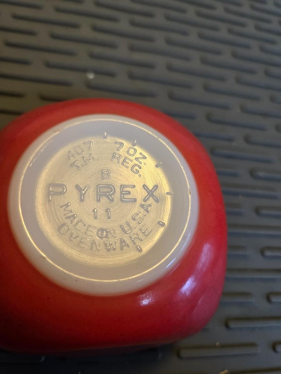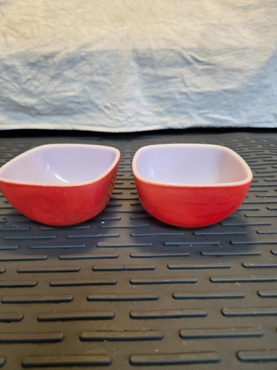 Set of 2 Pyrex Red 407 square bowls, 7 oz each