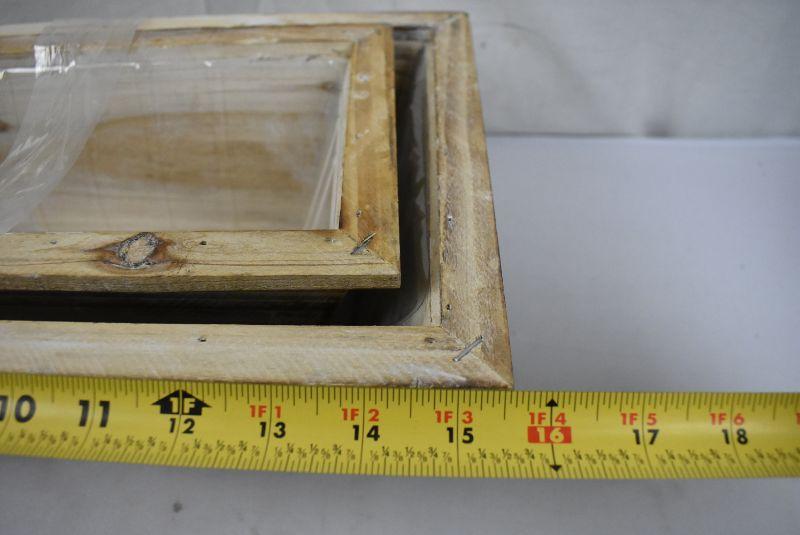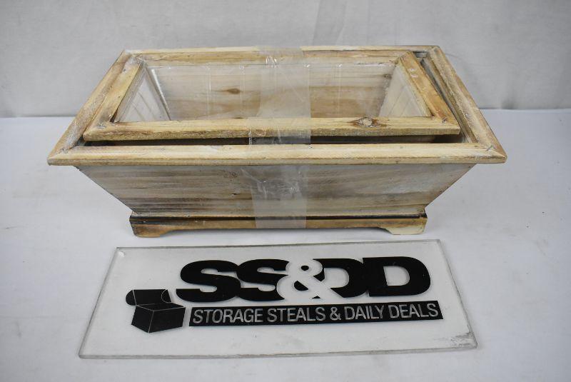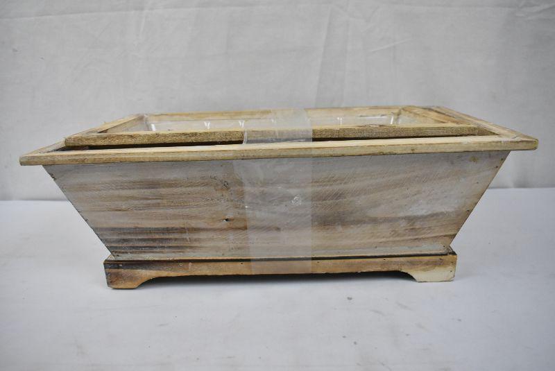 Set of 2 Rustic wood long rectangle planters w/ hard plastic liners - New