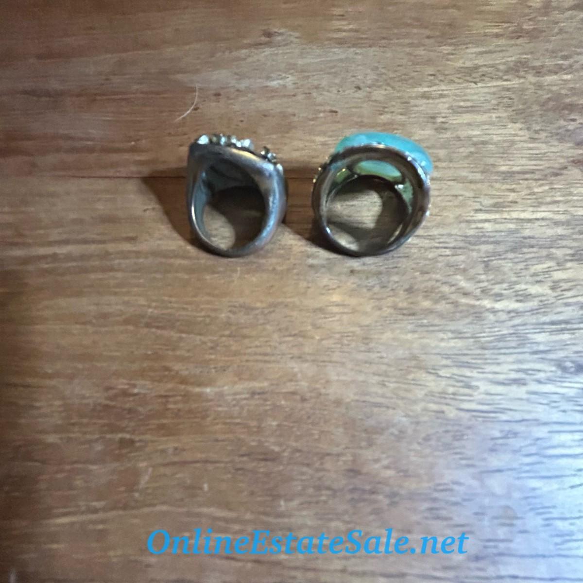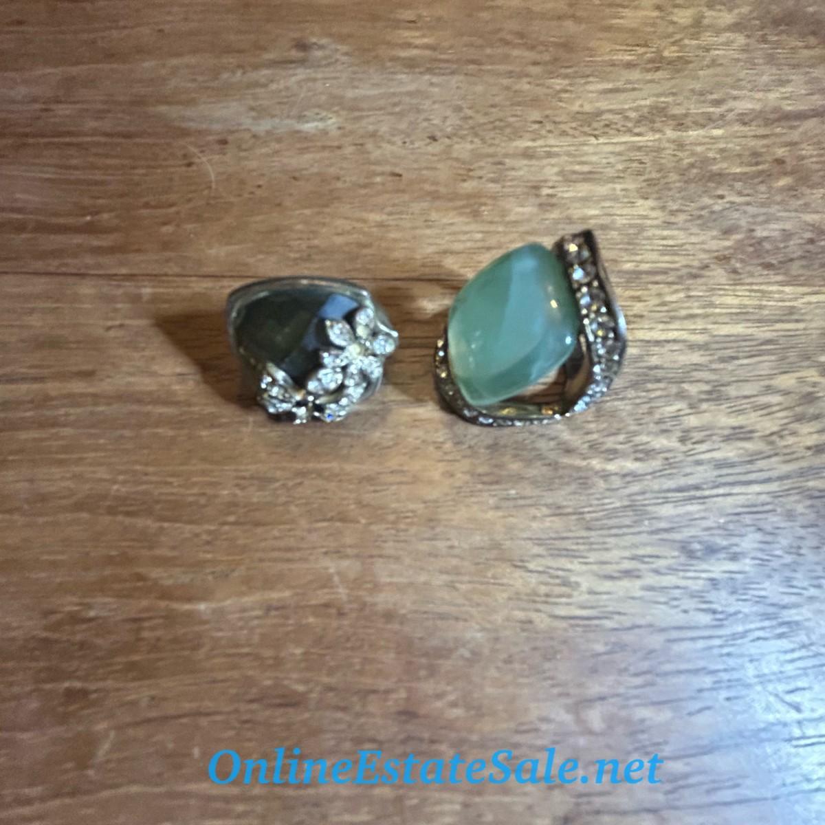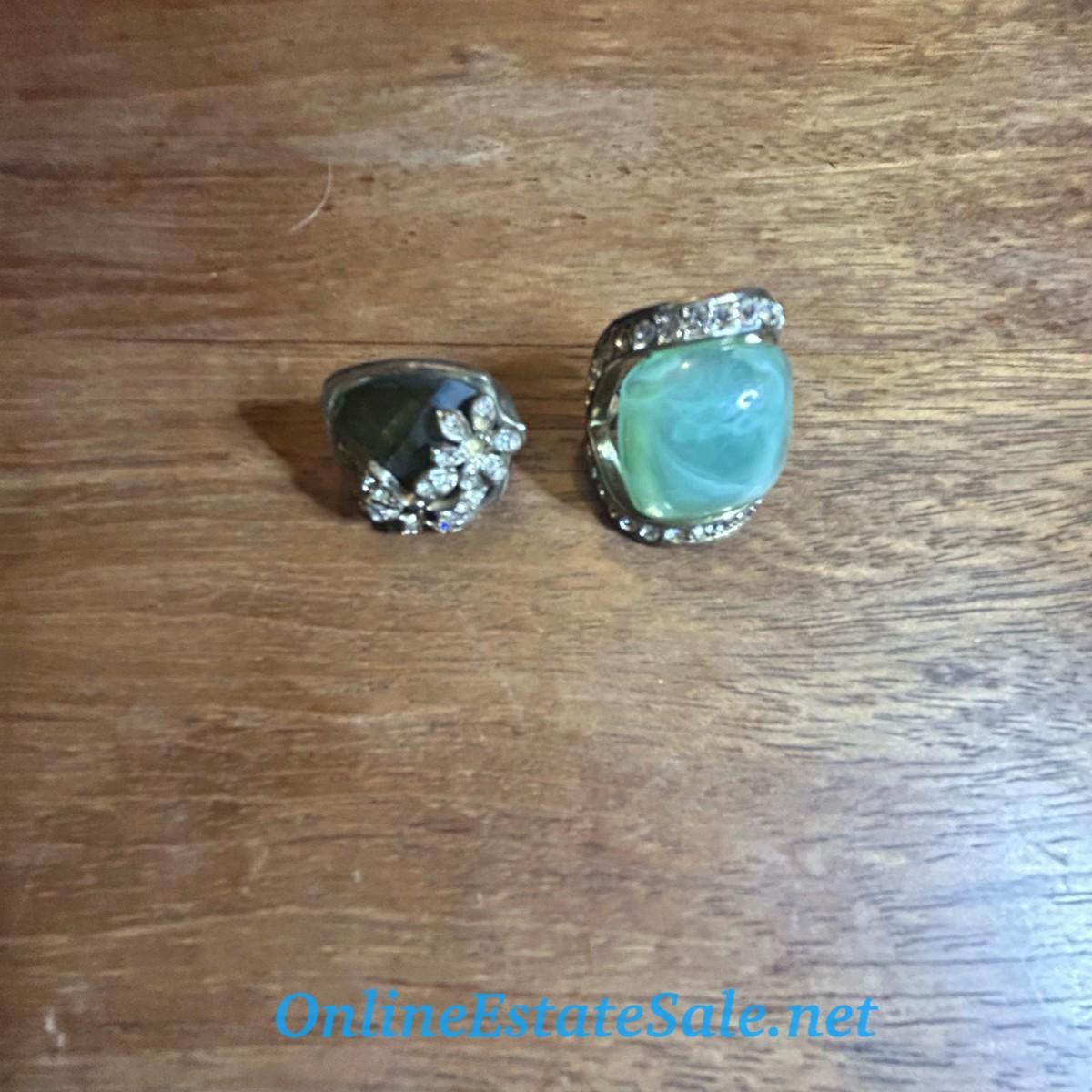 Large Silver Colored Ring with Light Green Stone and Rhinestone Inlay