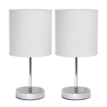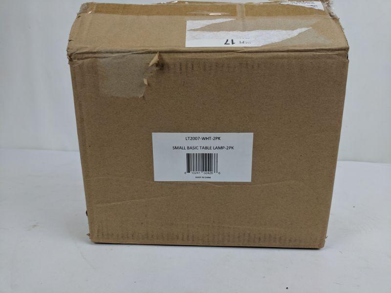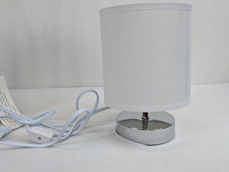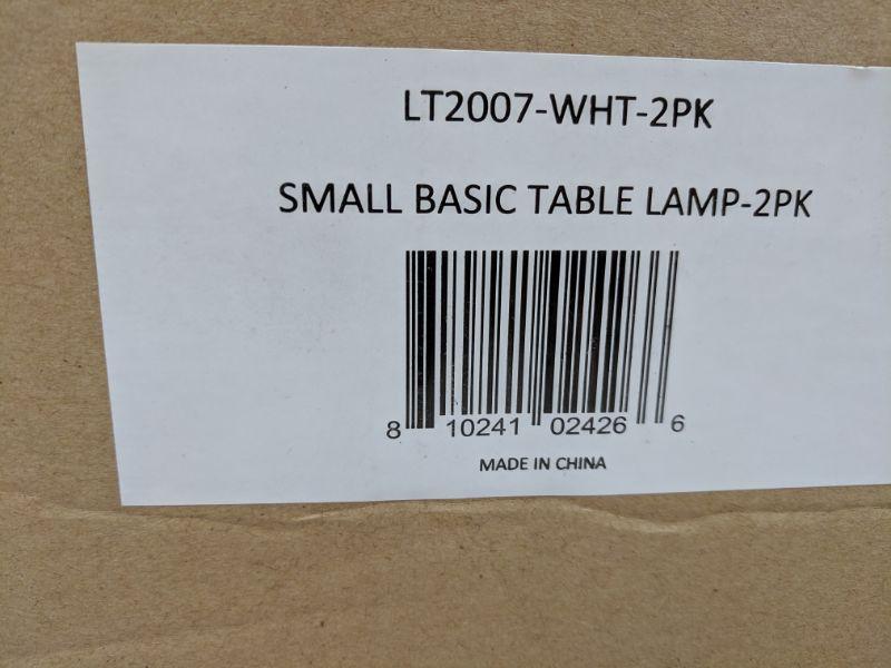 Set of 2 Small Basic Table Lamp, White Shade/Silver Bottom - New