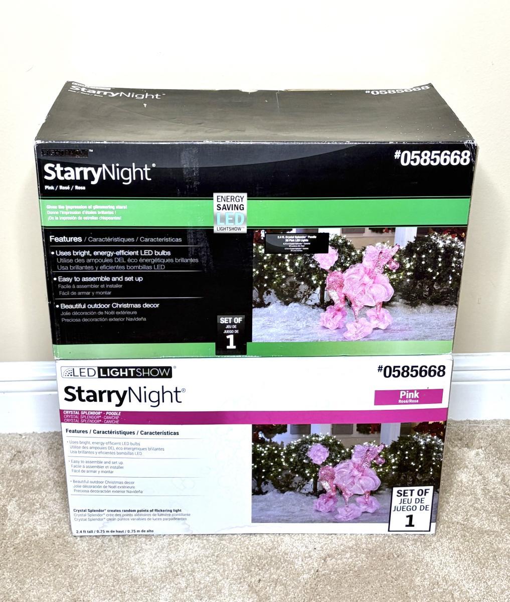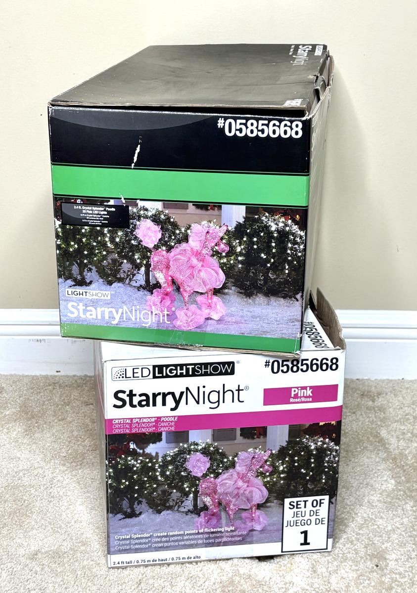 Set of 2 StarryNight 2.4 ft Light Up Yard Ornament Pink Poodles - New in Box