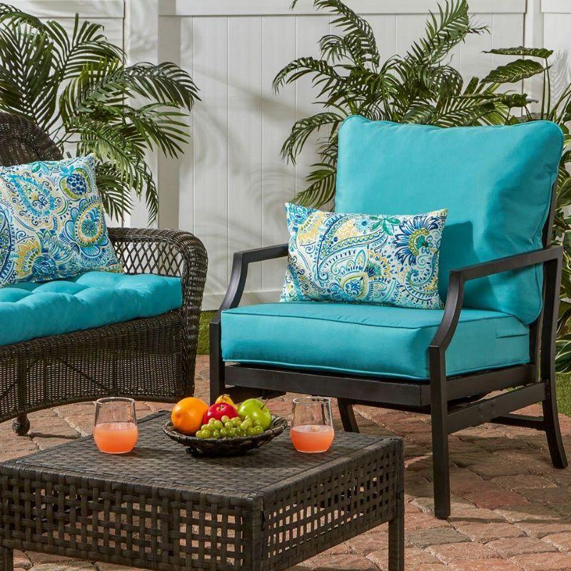 Set of 2 Teal Greendale Home Fashions Outdoor Solid Deep Seat Cushions - New