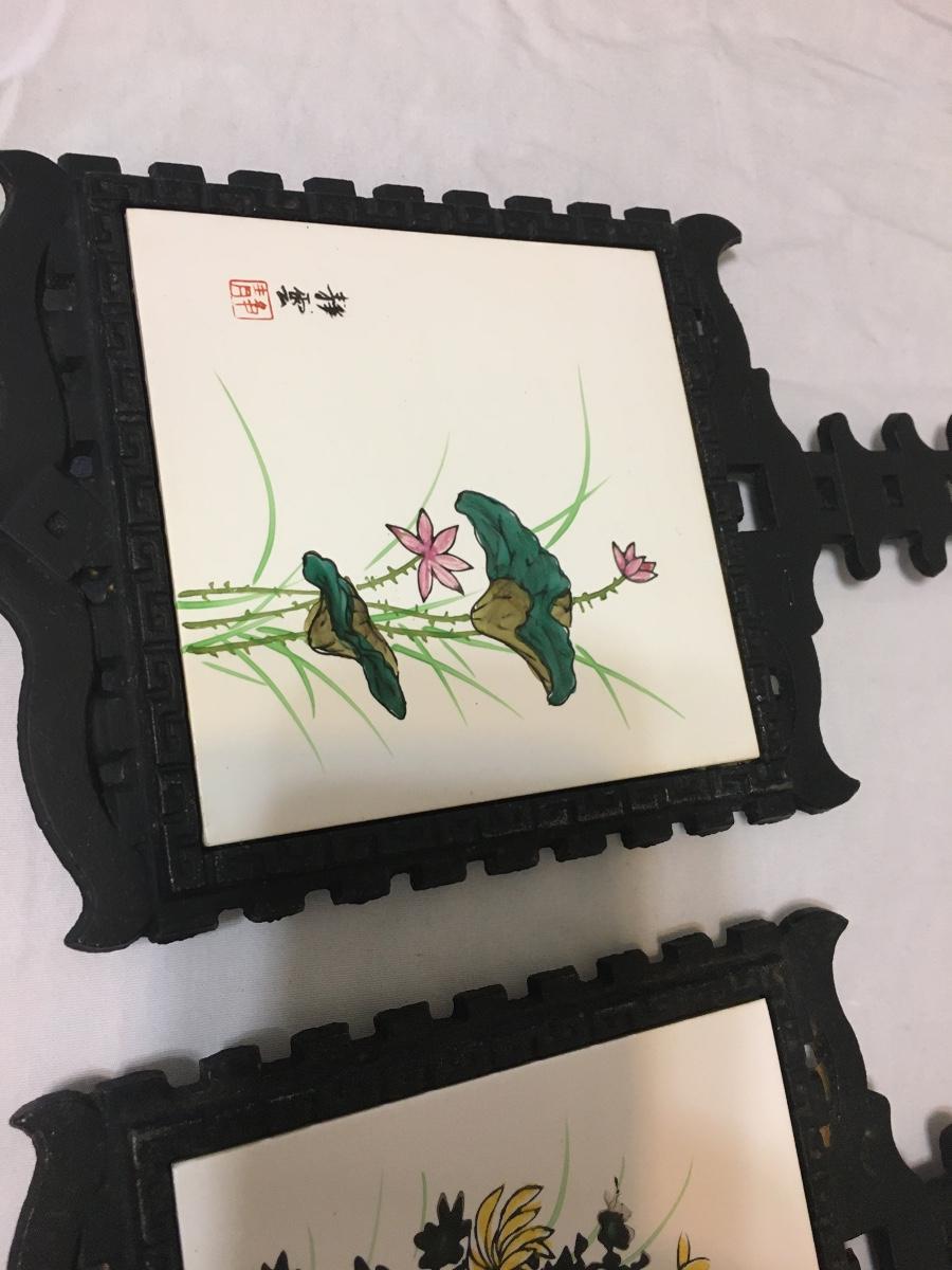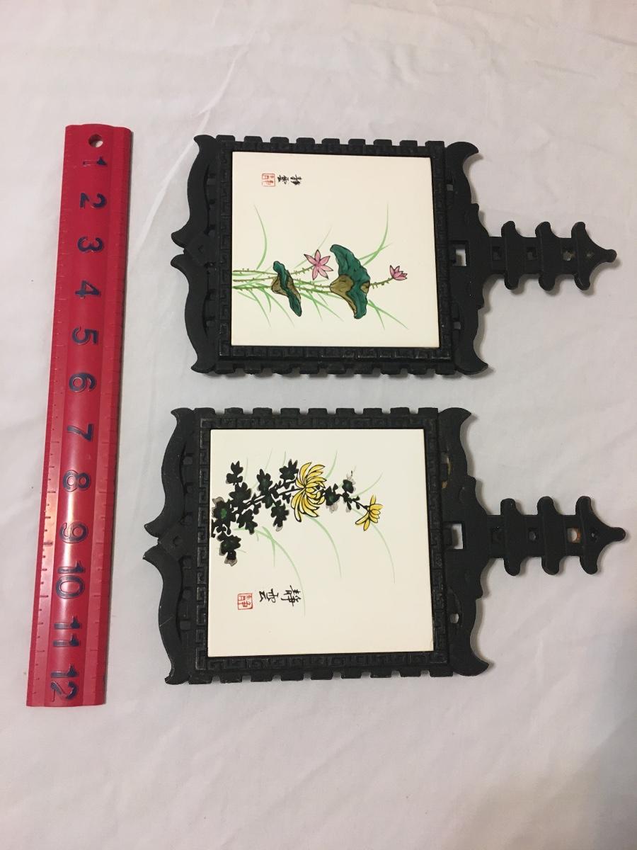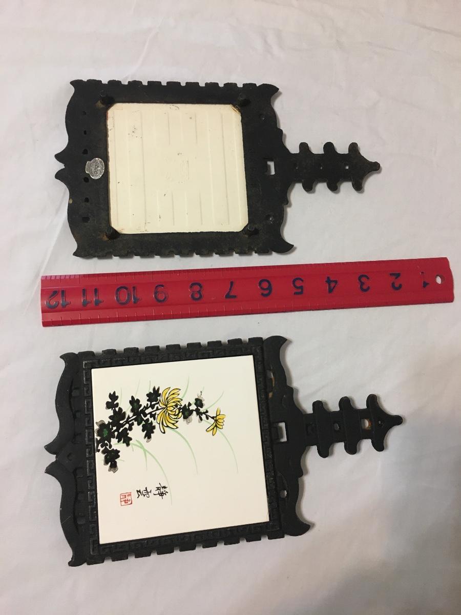 SET of 2 - Vintage 1970’s Cast Iron Ceramic Tile Trivet-Japan
