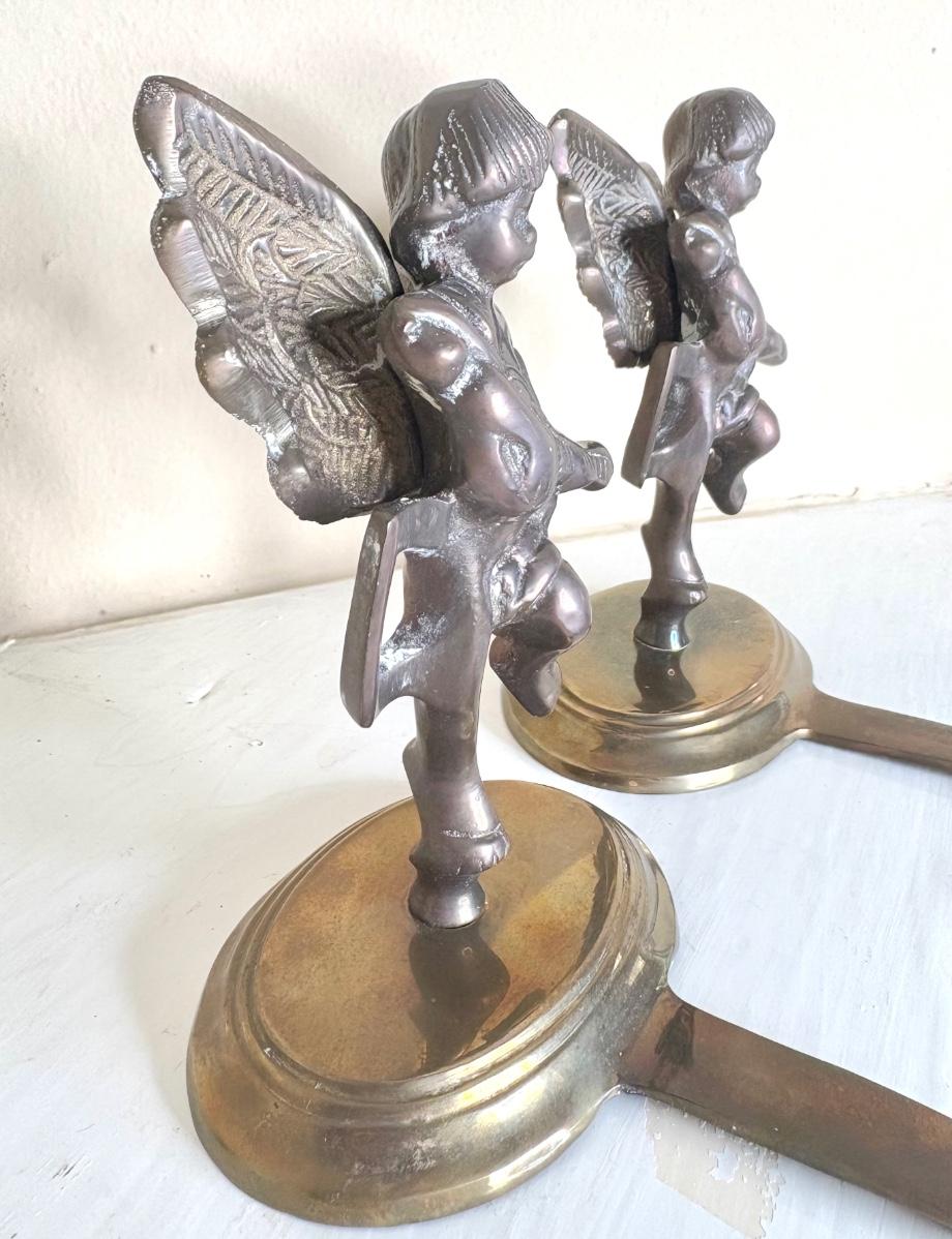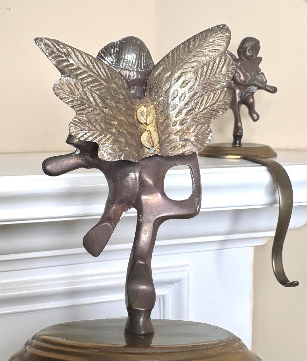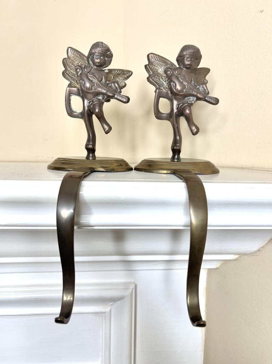 Set of 2 Brass Cherub Stocking Holders