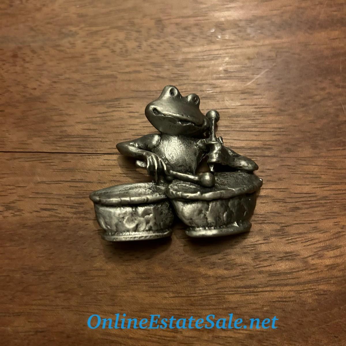2in Silver Colored Frog Playing Drums Brooch