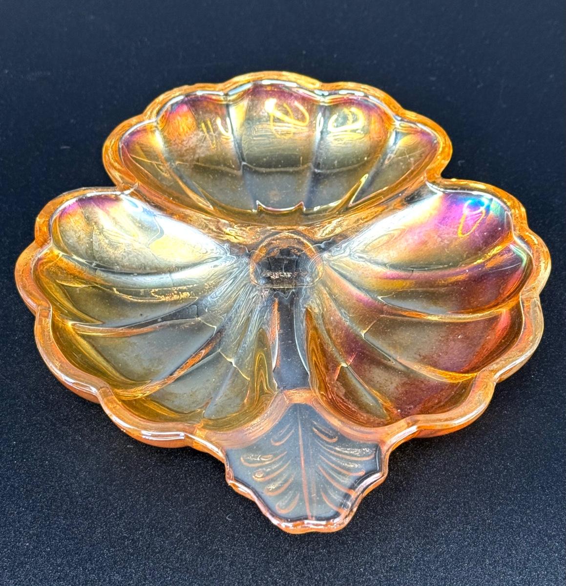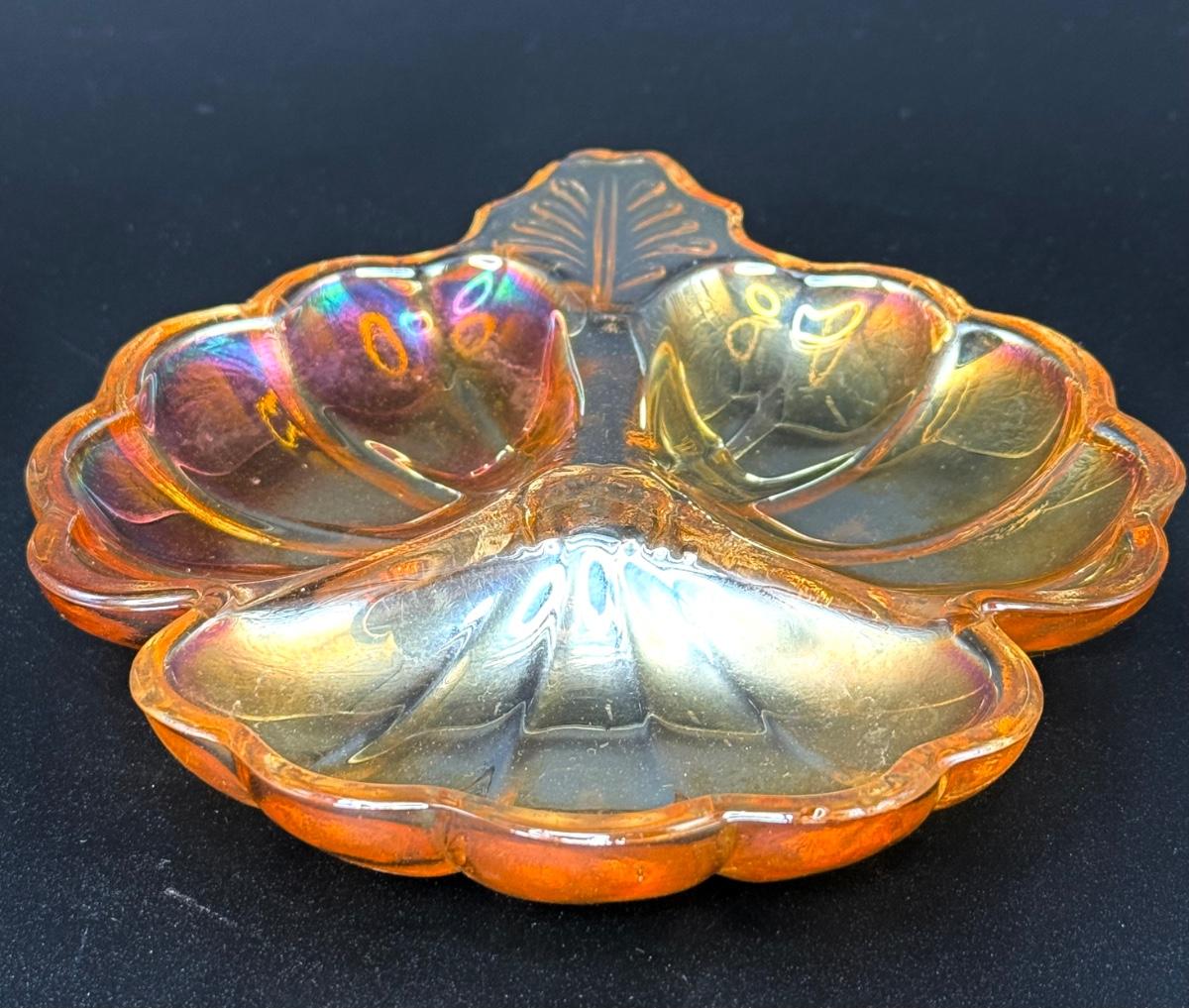 Set of 2 Vintage Imperial Carnival Glass Dishes - Iridescent Marigold