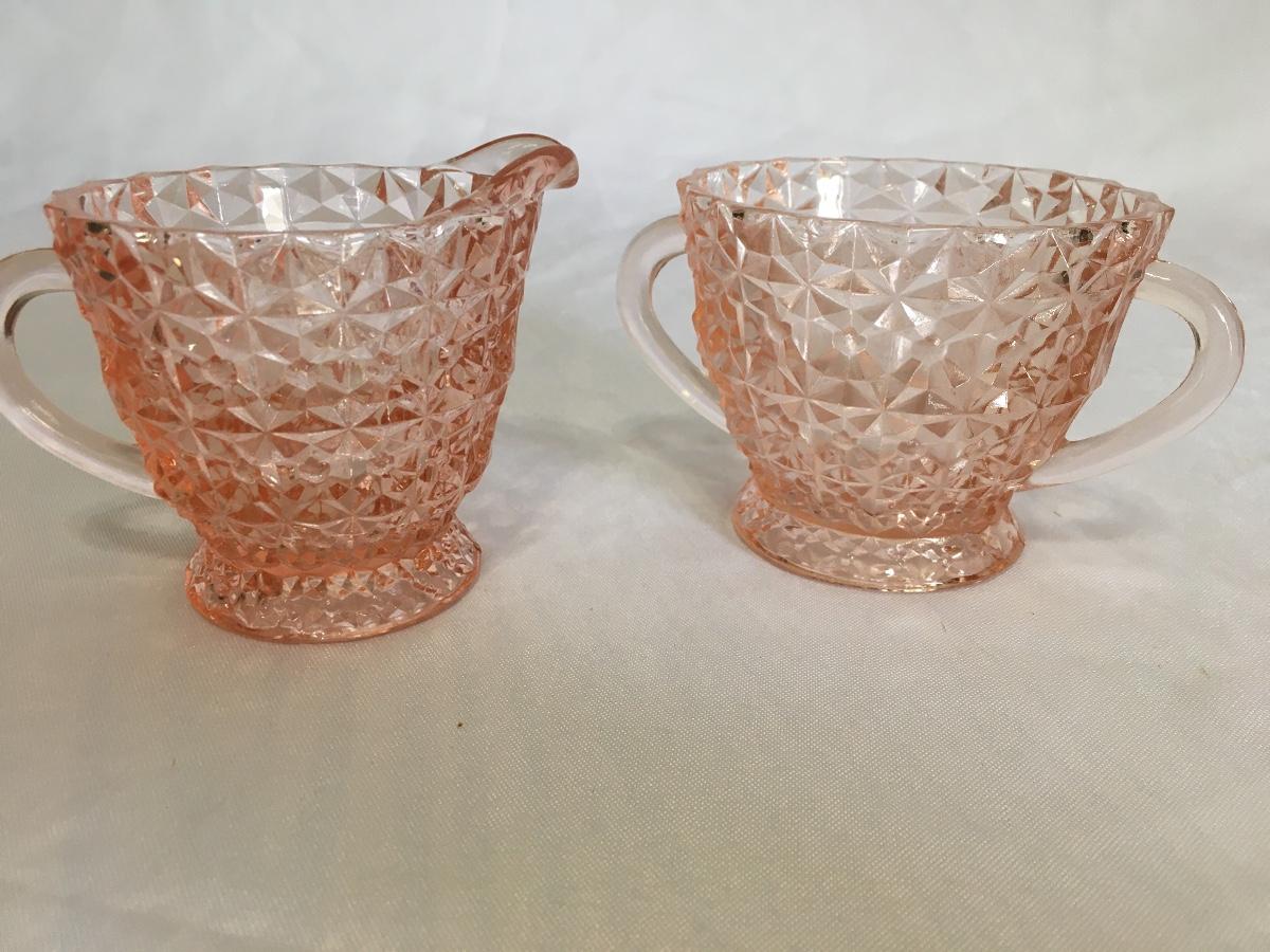 Set of 2 Vintage Pink Depression Glass Creamer & Sugar Bowl