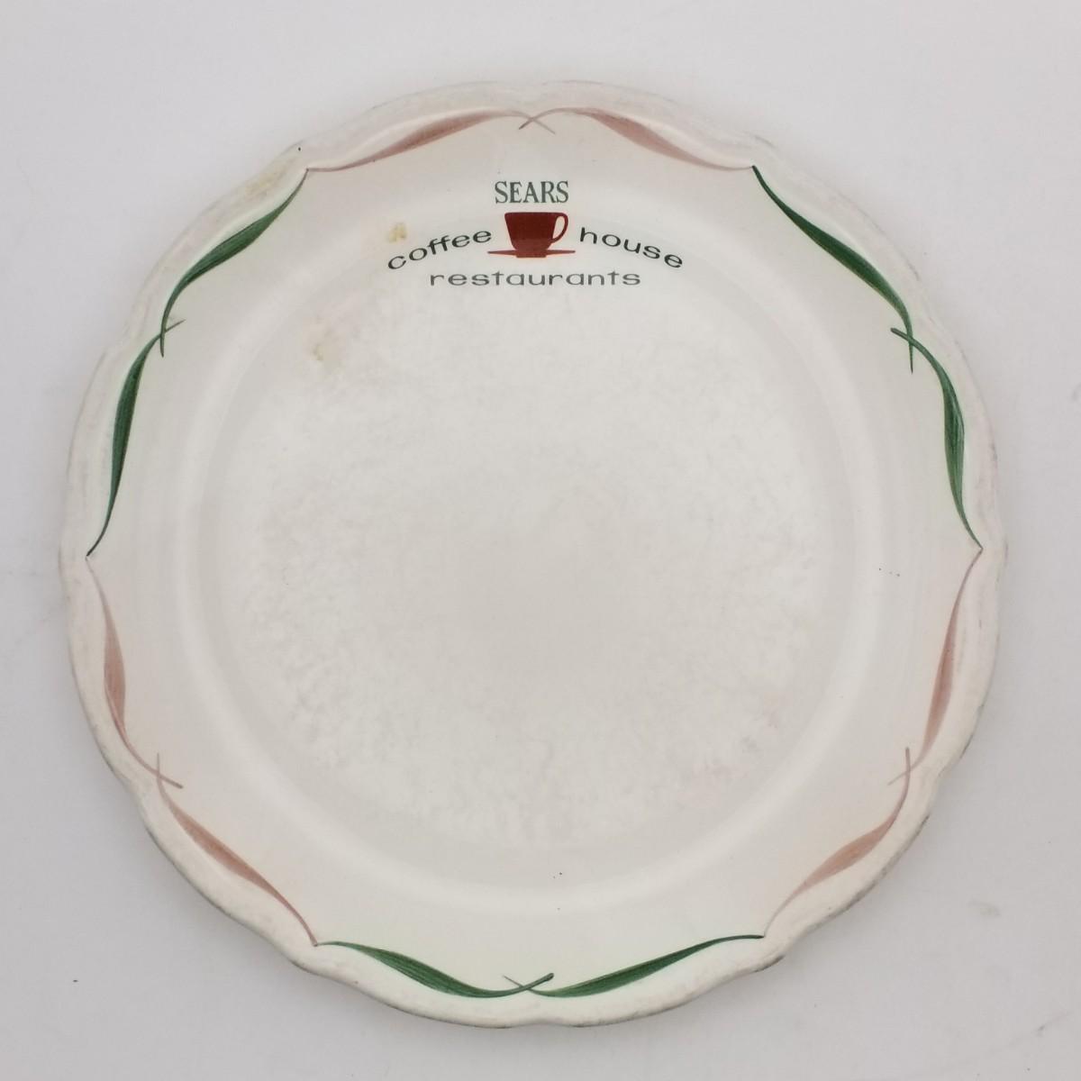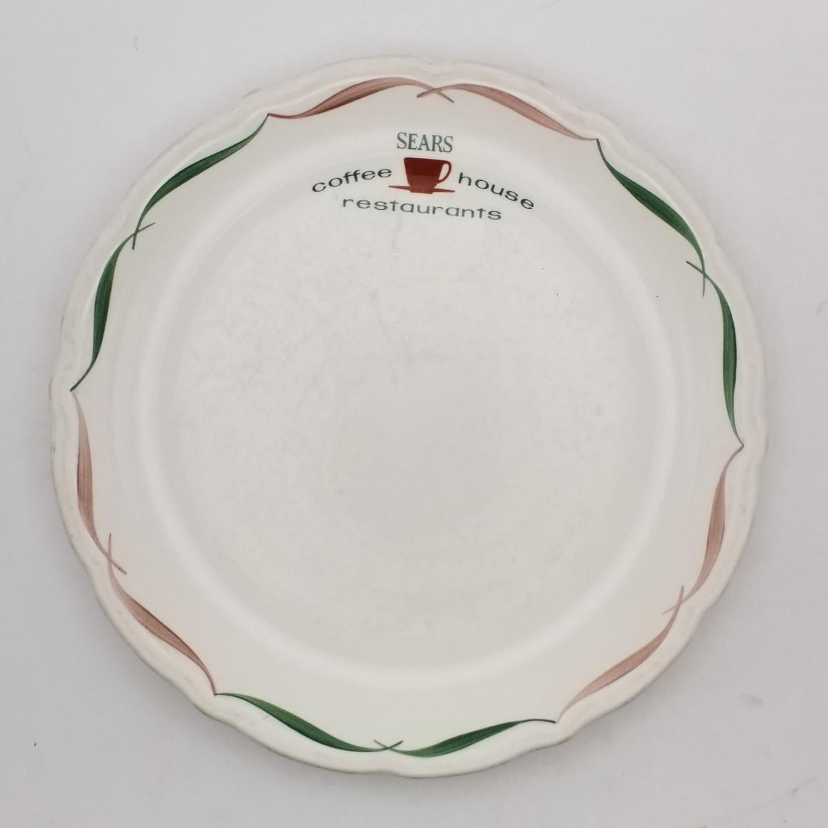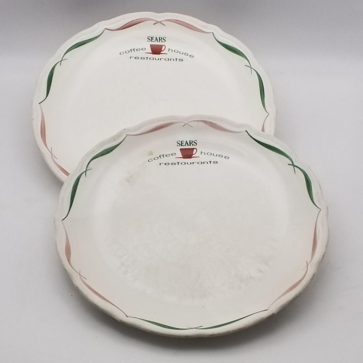 Set of 2 Vintage Sears Coffee House Restaurants Plates White with Green And Tan / Brown Logo and Decoration 9" Round Plate Syralite by Syracuse USA