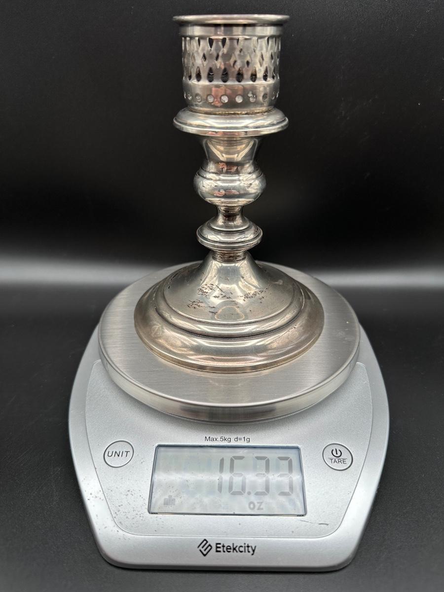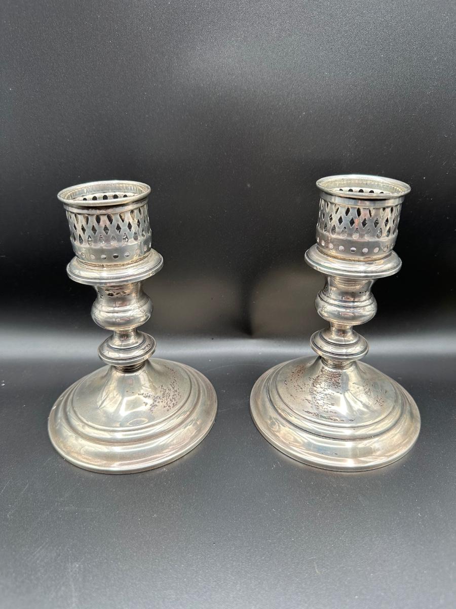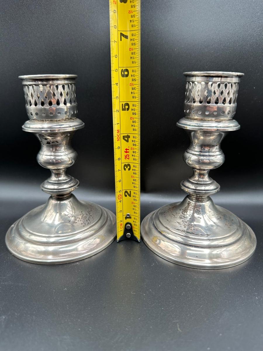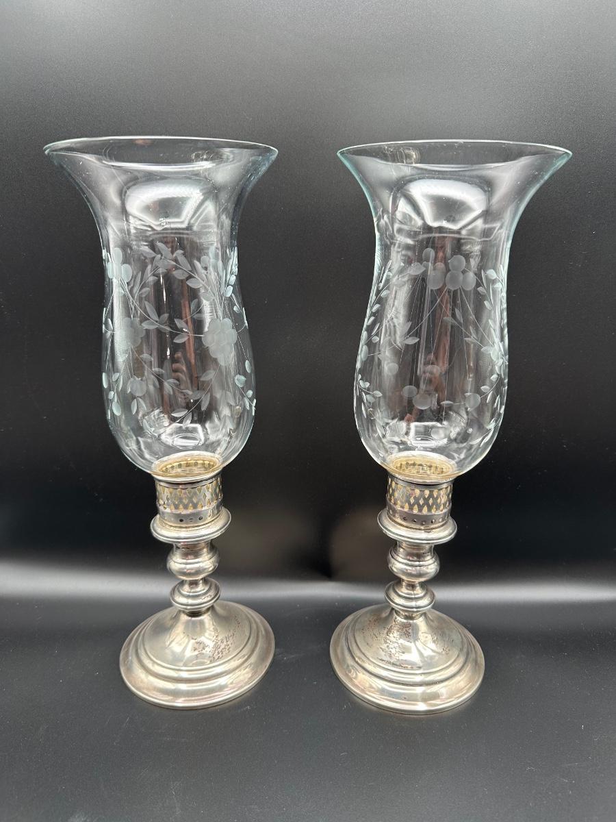 Set of 2 Vintage Sterling Silver Hurricane Glass Shade Candle Holders