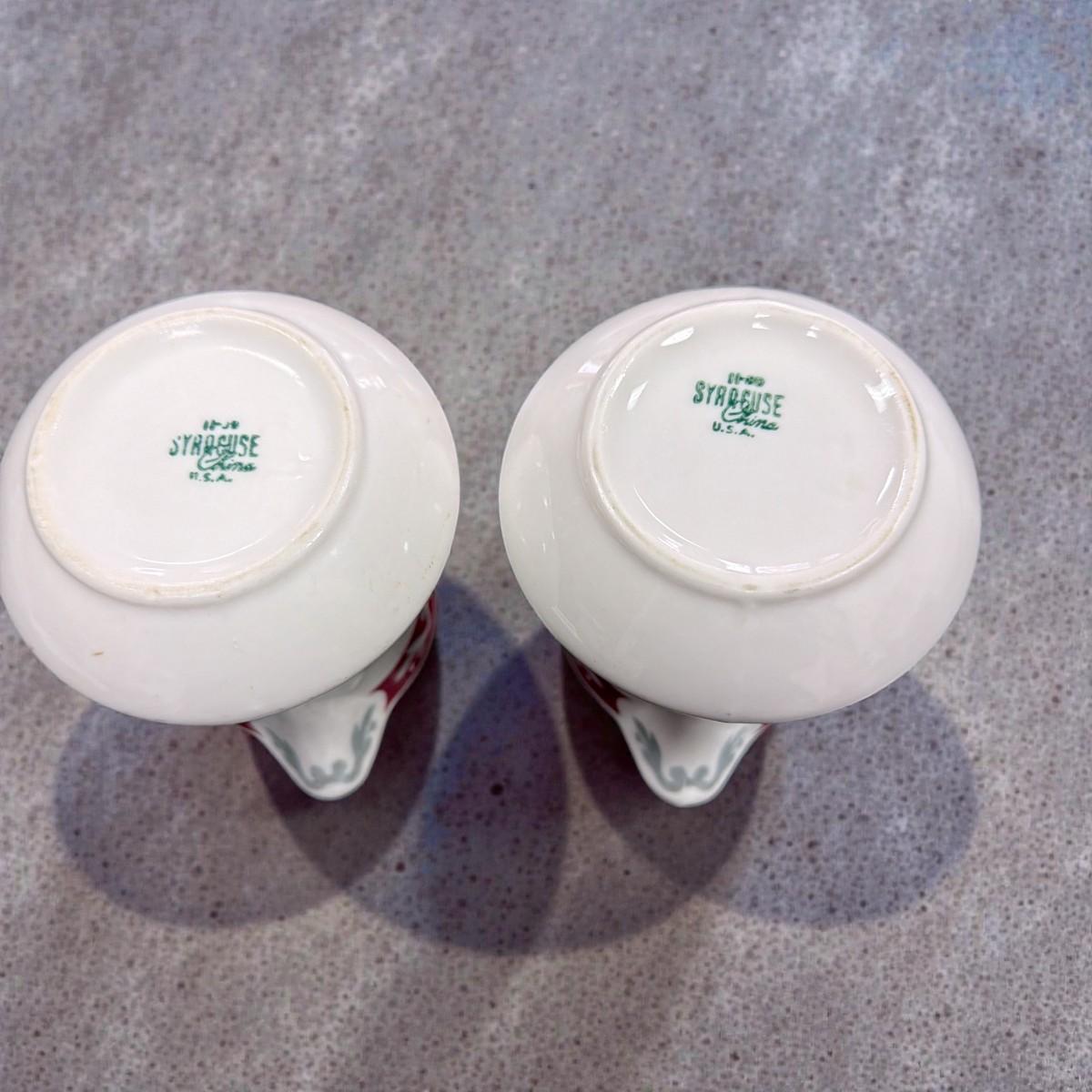 Set of 2 Vintage Syracuse China Embassy Creamer in maroon and gray scroll pattern