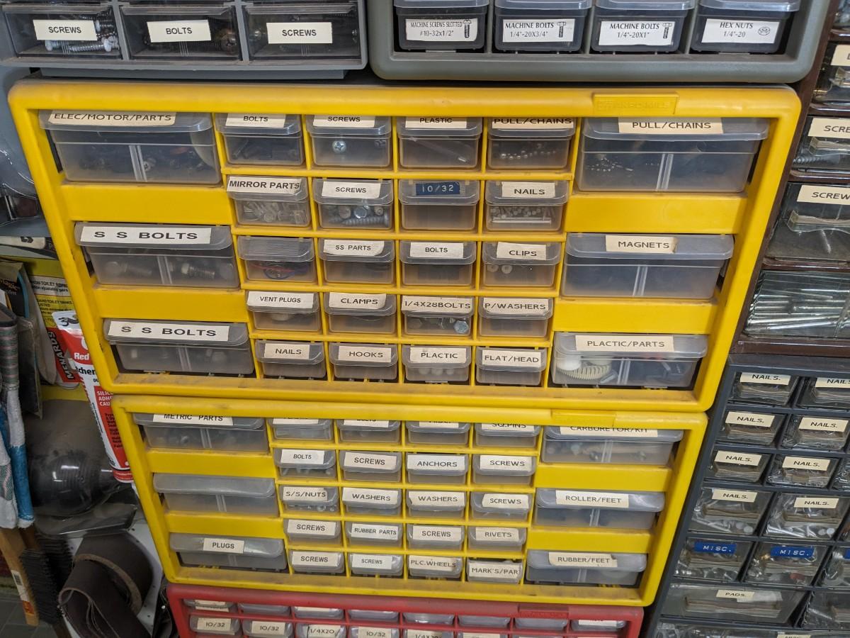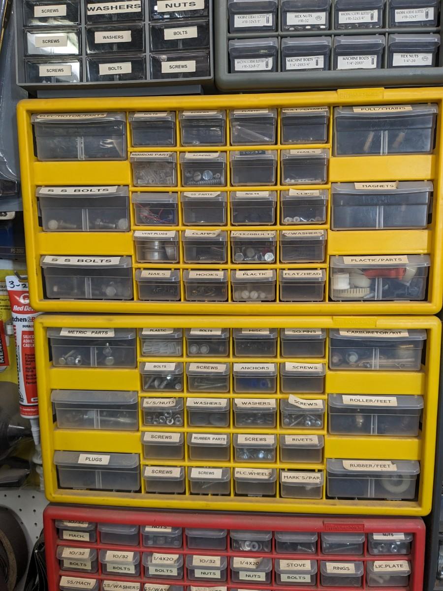 Set of 2 Yellow Organizers of Misc Bolts, Screws, Washers,..