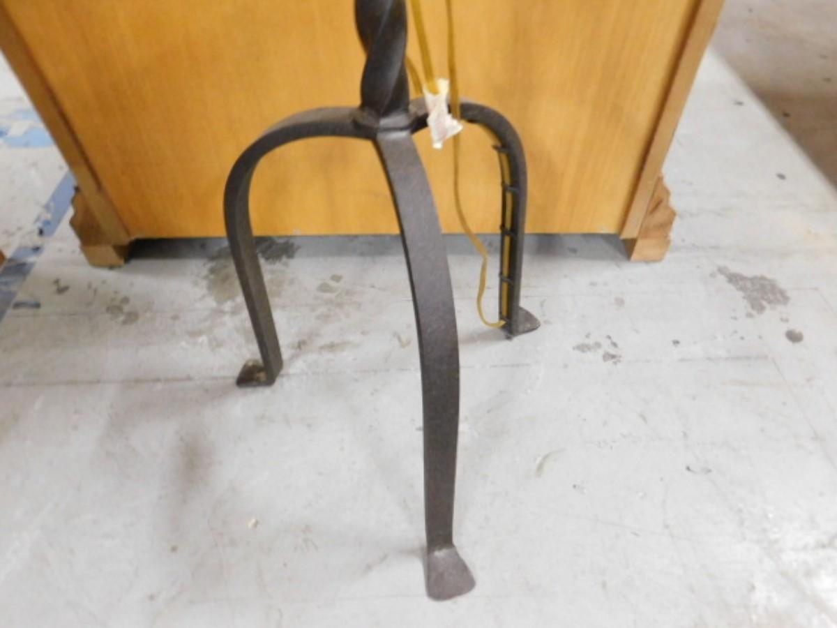 Set of 20 Rustic Wrought Iron Twist Post Tri-Ped Base Floor Lamps (Some may not have shades) Bidder is buying 20 units. Expect some wear or scratches to the finish. Shipping option available via freight or local mover at Buyer's expense. Buyer must have all shipping scheduled within the stated dates and times of pickup. Recommended local mover is Beaty Bros. Moving 828-201-2982